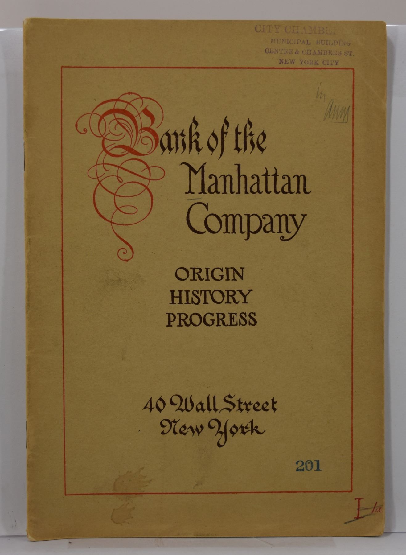 Bank of the Manhattan Company. BANK OF THE MANHATTAN COMPANY: ORIGIN, HISTORY, PROGRESS. Irving Press. ND. 12mo, 23 pages; Softcover; . Subject: History - Banking - New York