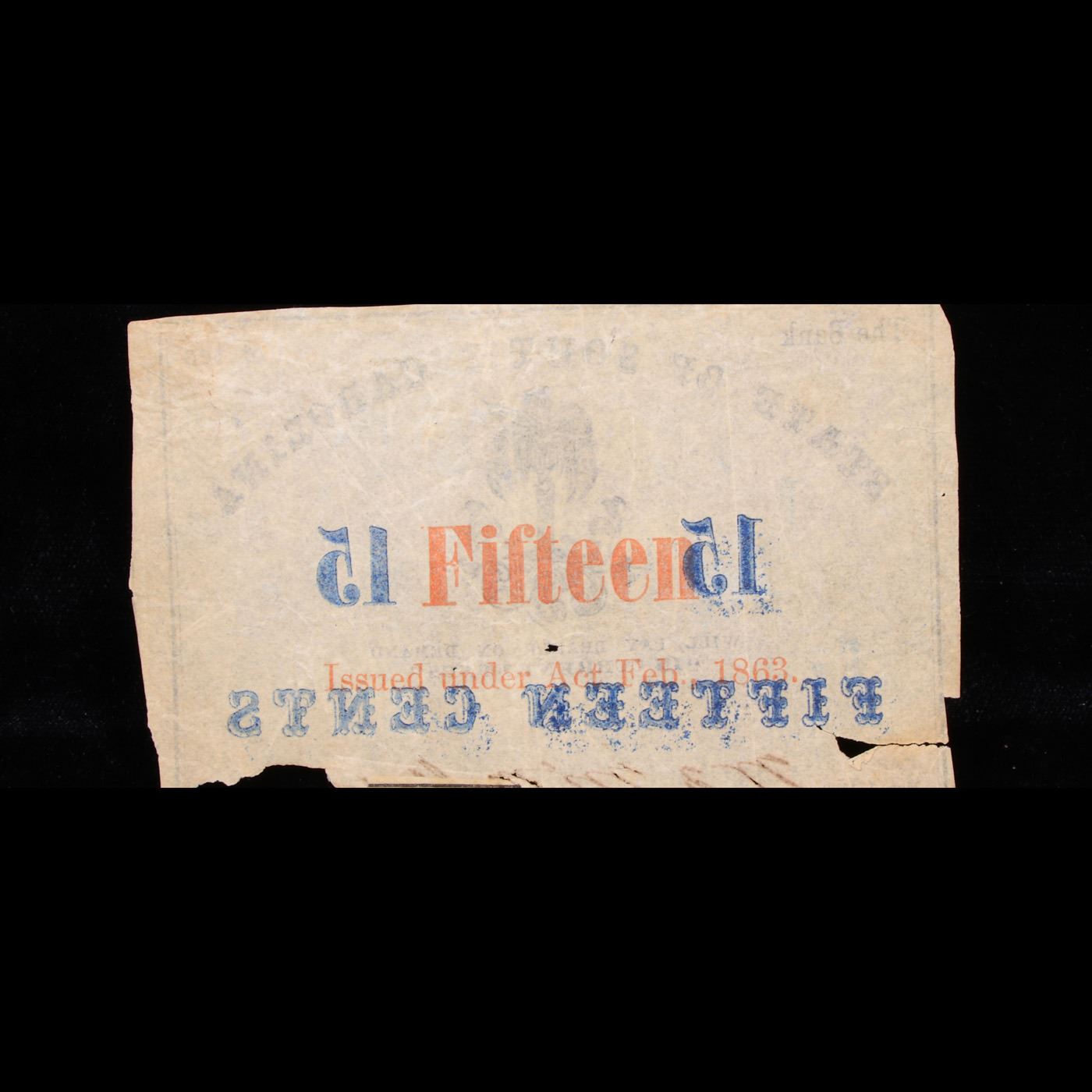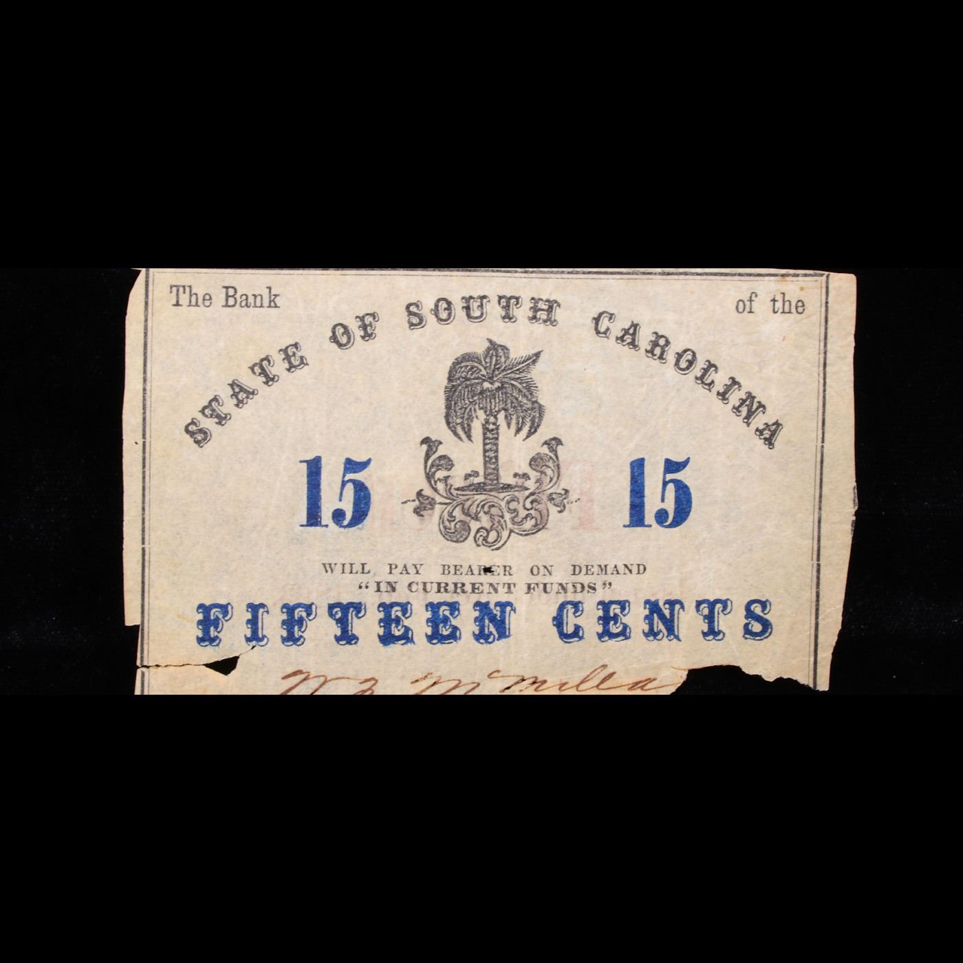 Bank of the State of South Carolina (Charleston, SC) 15¢ Feb. 1, 1863 G91e Grades xf details.