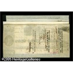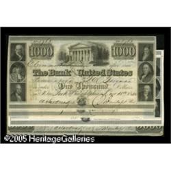 <B>Bank of the United States (3rd) High Denomination Post Note Quartet.</B></I><BR>Philadelphia, PA- Bank of the United States New York Branch $1000 Dec. 15, 1840 G100 Choice AU<BR>Philadelphia, PA- Bank of the United States New York Branch $2000 Dec. 15, 1840 G102 CU<BR>Philadelphia, PA- Bank of the United States $2000 18__ UNL Proof CU, backed and once mounted<BR>Philadelphia, PA- Bank of the United States New York Branch $5000 Dec. 15, 1840 G106 Fine, pinholes, repair.<BR>This reincarnation of The Bank of the United States had a Pennsylvania state banking charter and closed its doors for the last time in 1841. Each of the issued notes in this lot has four printed paid endorsements on the back.<BR> 4 notes Lot:15538