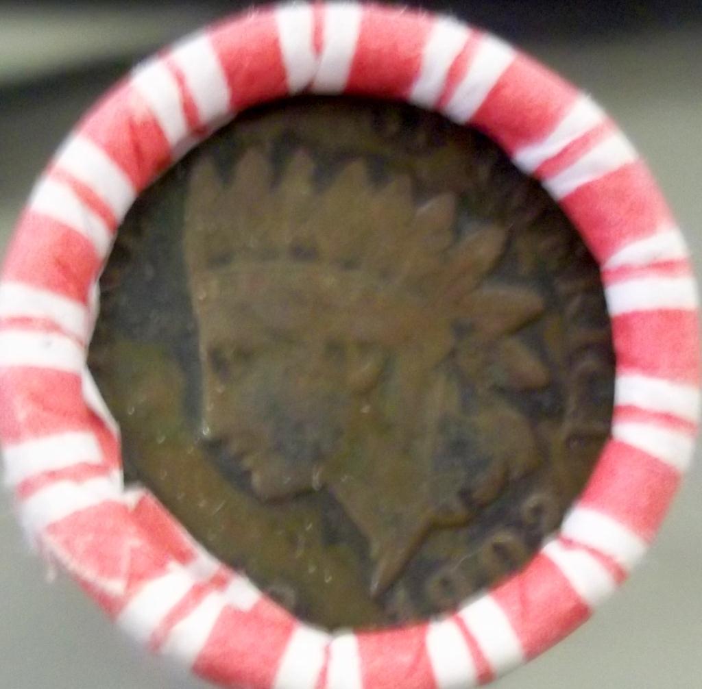 coins on both ends. End one shows 1905 Indian Head cent, end 2 shows 1902 Indian head cent.
