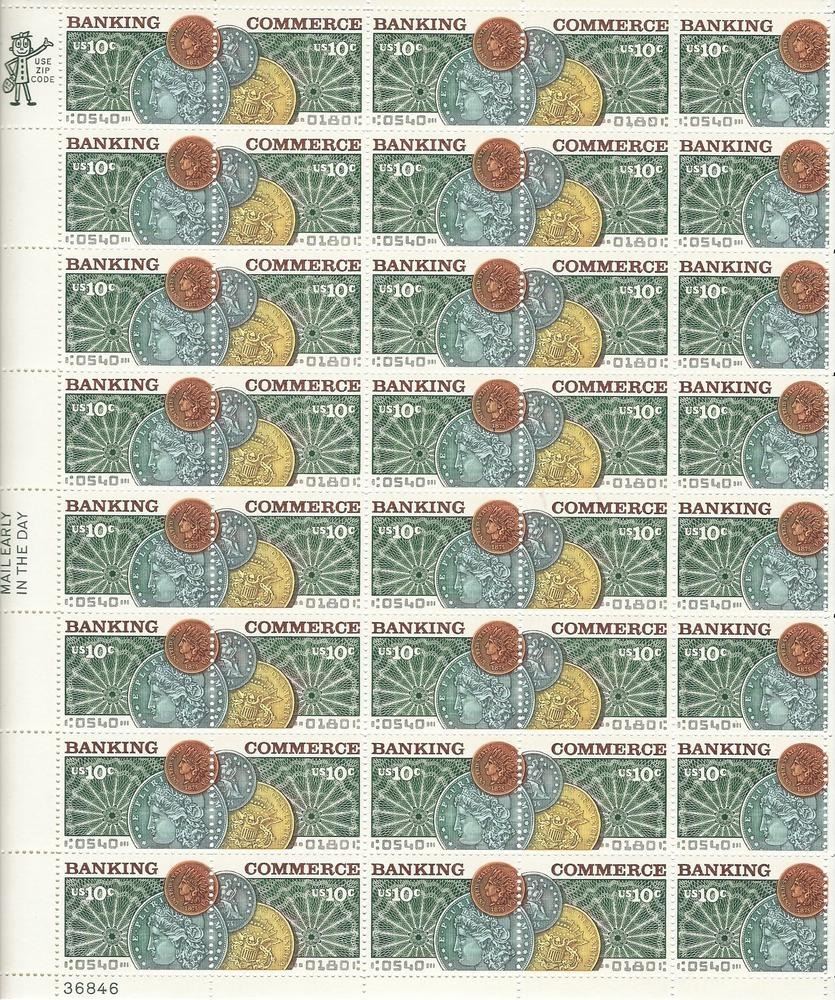 USPS Banking & Commerce Full Sheet of 40 x 10 Cent Stamps Scott #1577-1578