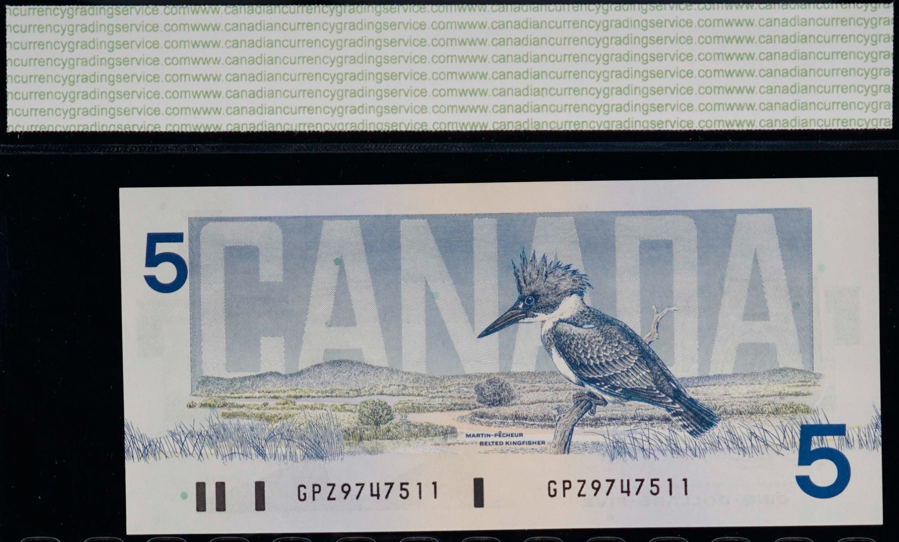 Banknote Lot - 1986 $5 ; Includes various signatures, prefixes and grades. All 7 notes CCGS Extra Fine-40 to Superb Gem Uncirculated-67. "Changeover"