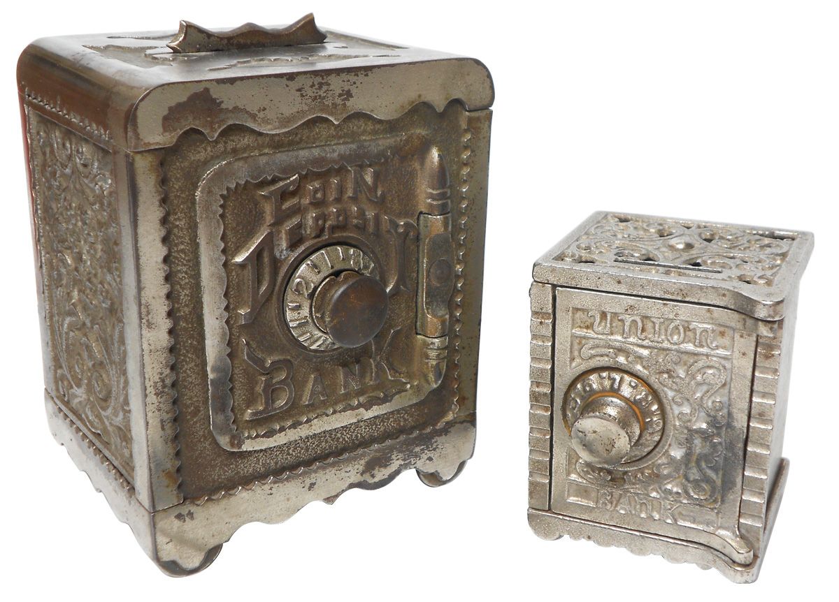 Banks (2), combination, Coin Deposit Bank, 5"H & Union Safe bank, mfgd by Kenton, 3"H, both cast iro