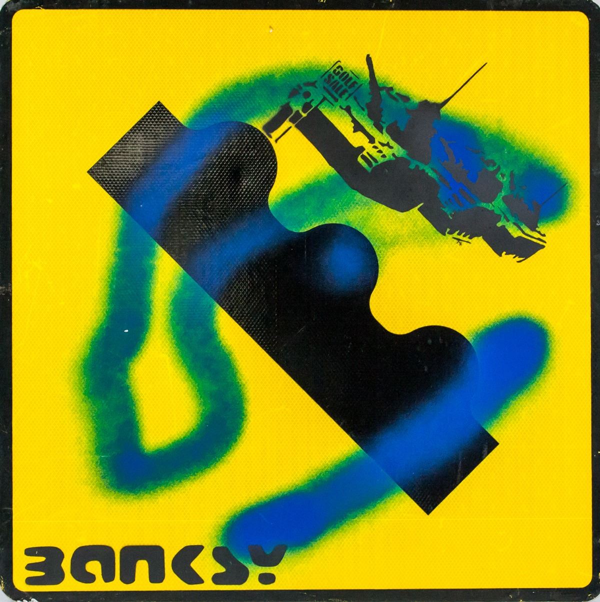 Square metal reflective sign. With grafitti. Spray-painted BANKSY on the lower left corner. Attributed to Banksy (born 1974, British). 75 x 75 cm (29.5 x 29.5 inches). PROVENANCE: This lot carries limited provenance from a Private British estate