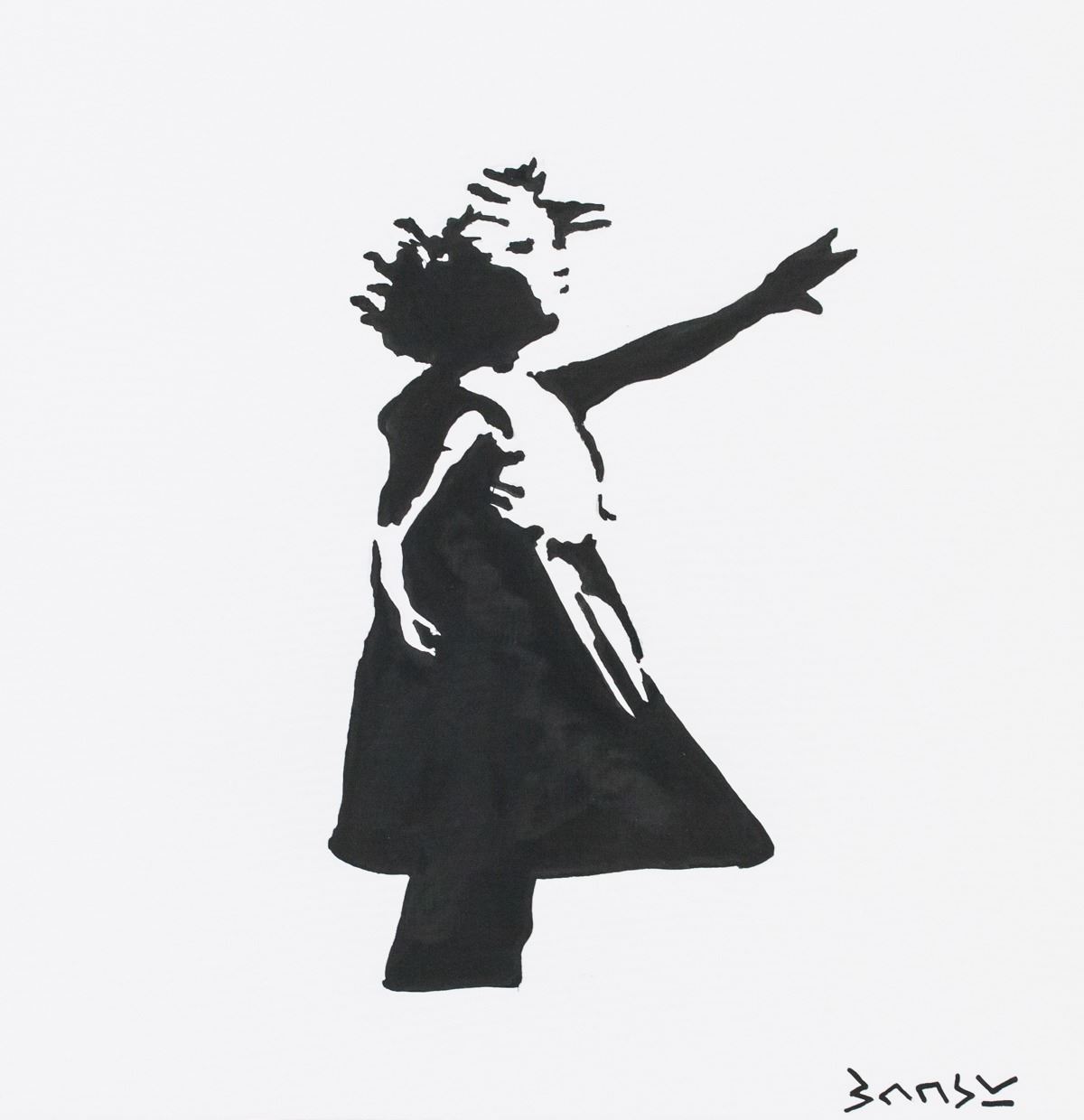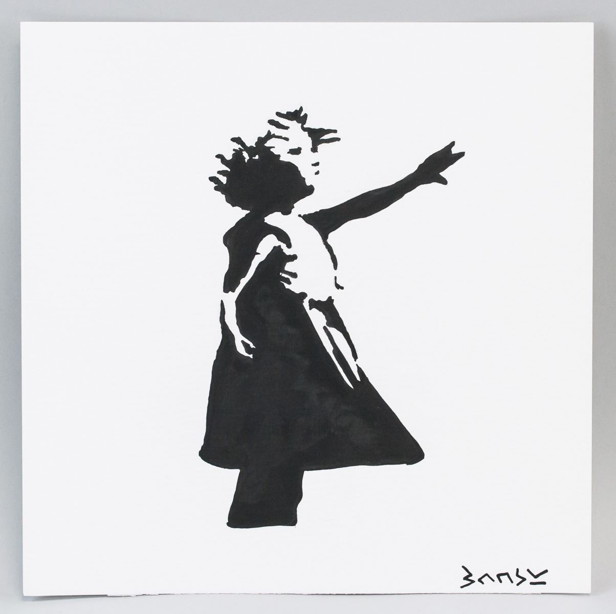 Spray paint on paper. Featuring a girl with her hand outstretched. Signed "Banksy" in the bottom right corner. Attributed to Banksy (1974- , British). 30.5 x 30.5 cm (12 x 12 inches). Provenance: This lot carries limited provenance from a Private Toronto collection