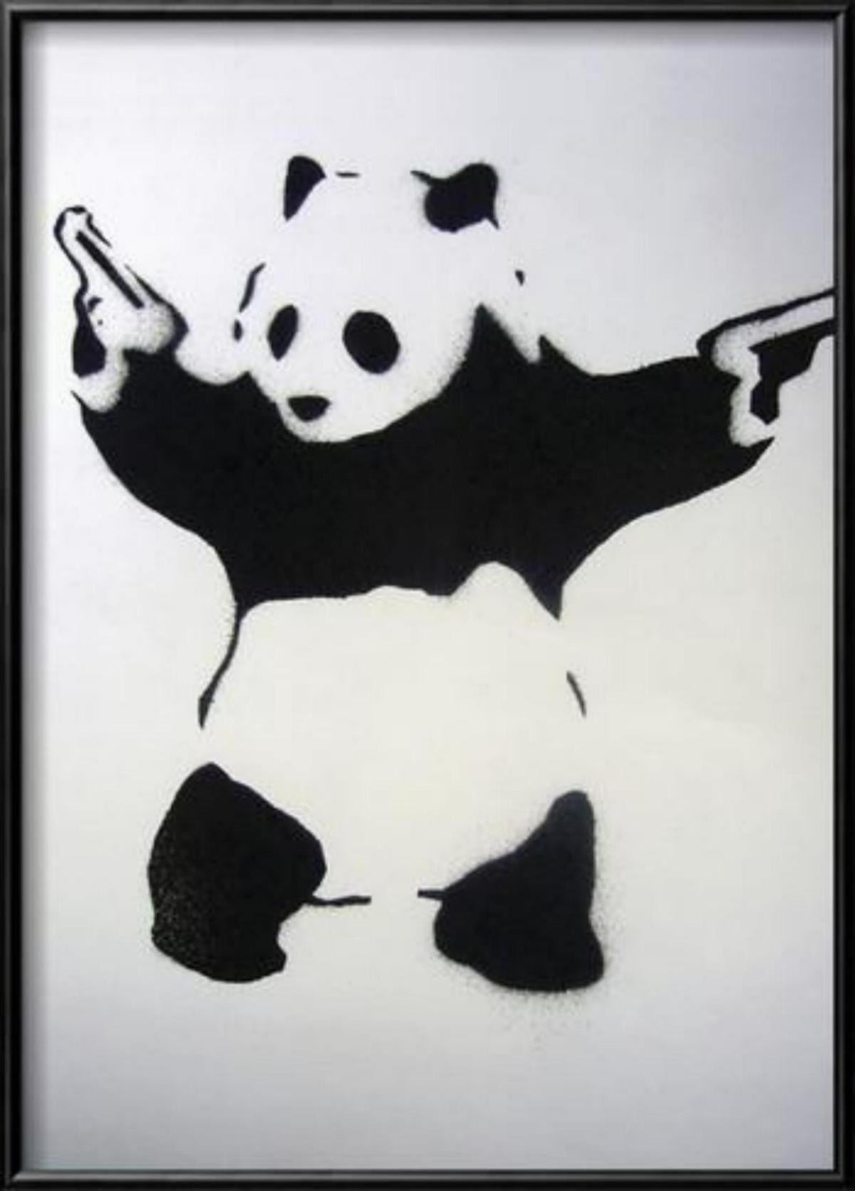 Artist: Banksy. Title: Pandamonium . Medium: Offset Lithograph. Frame size: 15.5x21". Custom Framed.