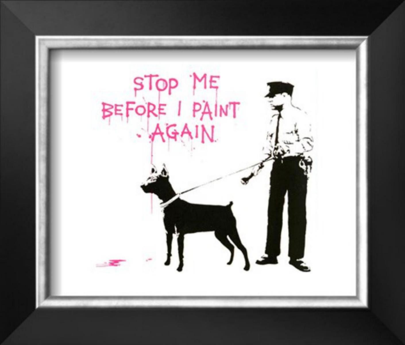 Artist: Banksy. Medium: Offset Lithograph. Title: Stop me before I paint again. Image Size: 14x11.5". Frame Size: 18.5x15.5"