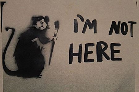 In the Manner of Banksy "Untitled" spray enamel on paper circa. 2010, private collection Approx. 19x14in.On his way to becoming an international icon, the subversive and secretive street artist turned the art world upside-down. When Time magazine selected the British artist Banksy—graffiti master, painter, activist, filmmaker and all-purpose provocateur—for its list of the world’s 100 most influential people in 2010, he found himself in the company of Barack Obama, Steve Jobs and Lady Gaga. He supplied a picture of himself with a paper bag (recyclable, naturally) over his head. Most of his fans don’t really want to know who he is (and have loudly protested Fleet Street attempts to unmask him). But they do want to follow his upward tra­jectory from the outlaw spraying—or, as the argot has it, “bombing”—walls in Bristol, England, during the 1990s to the artist whose work commands hundreds of thousands of dollars in the auction houses of Britain and America.