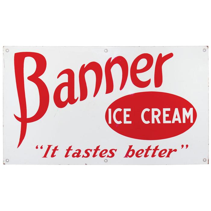 Banner Ice Cream porcelain sign, Exc cond w/small edge chips, 14"H x 24"W.