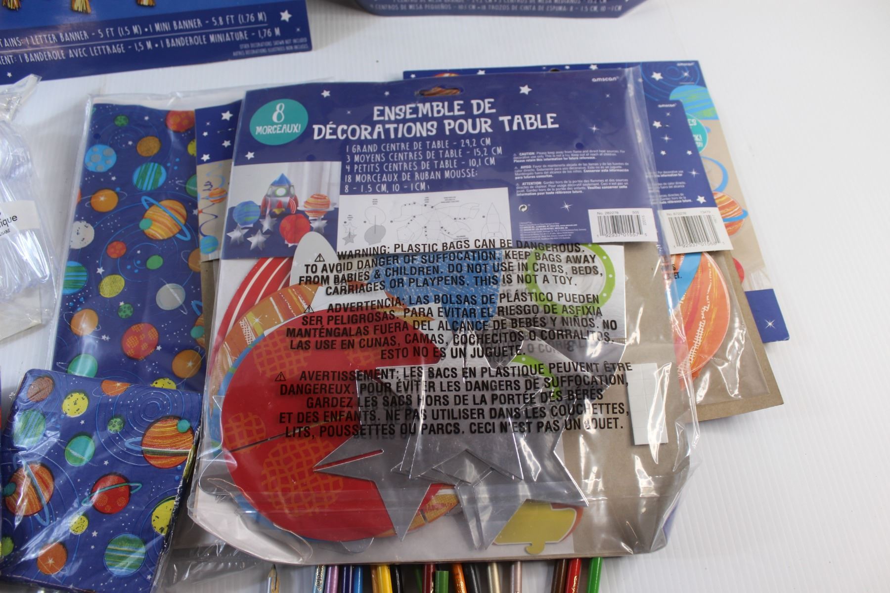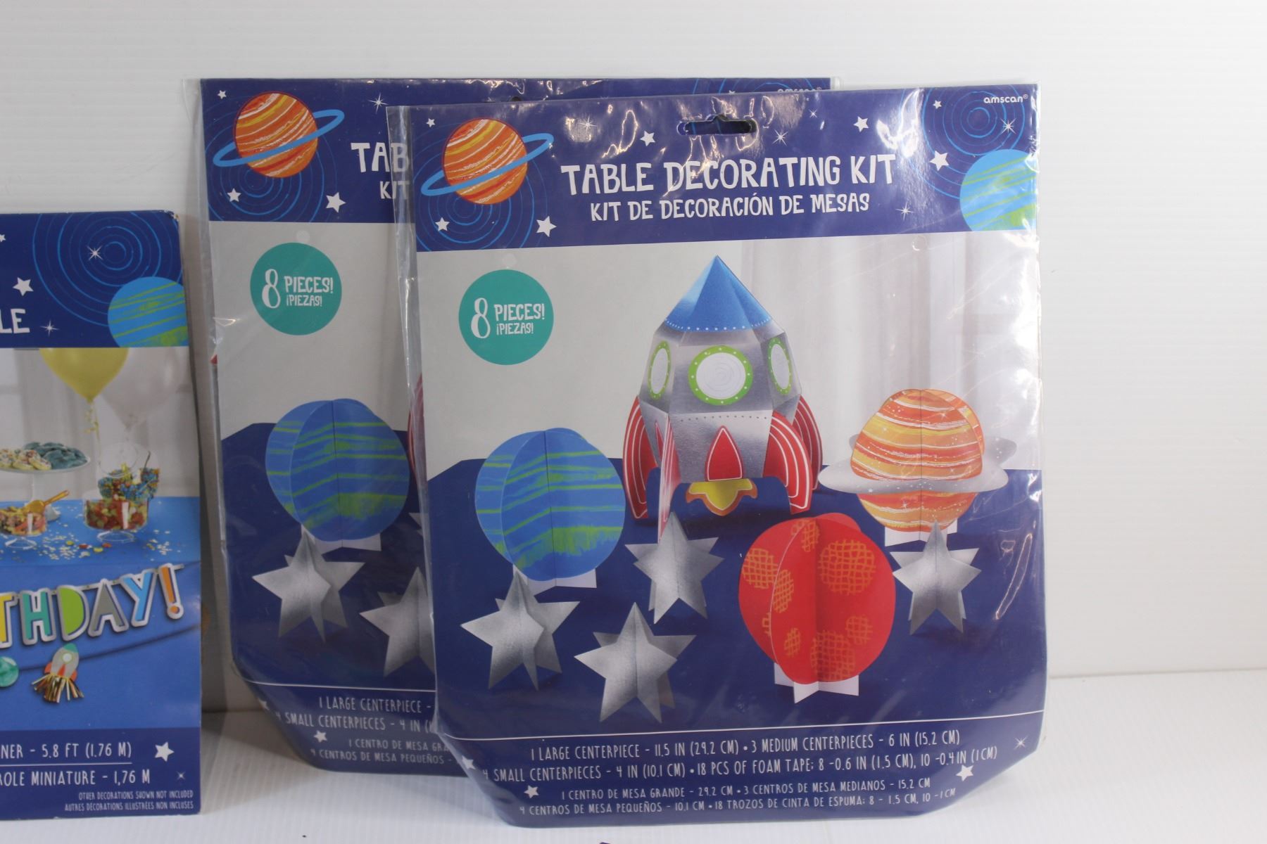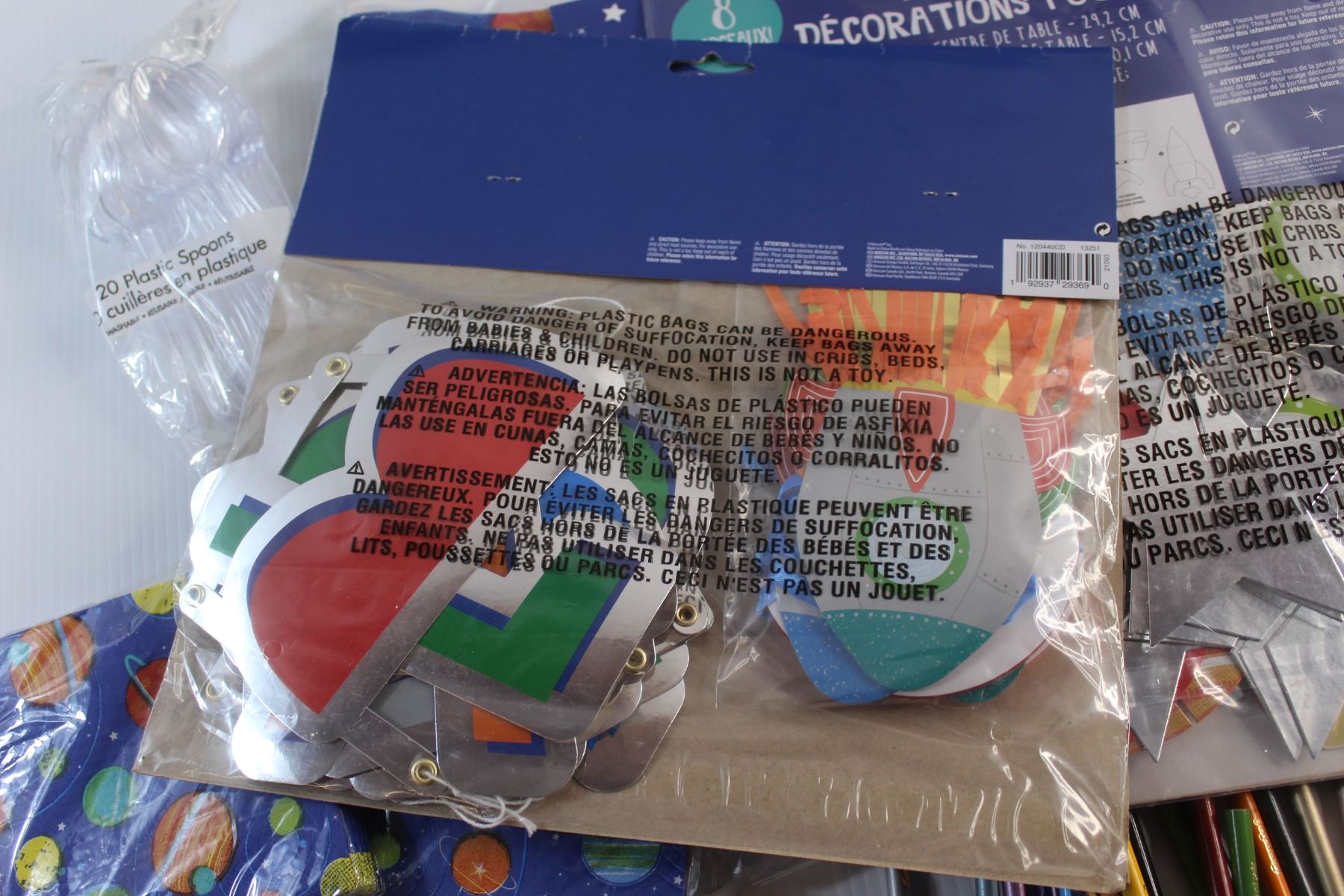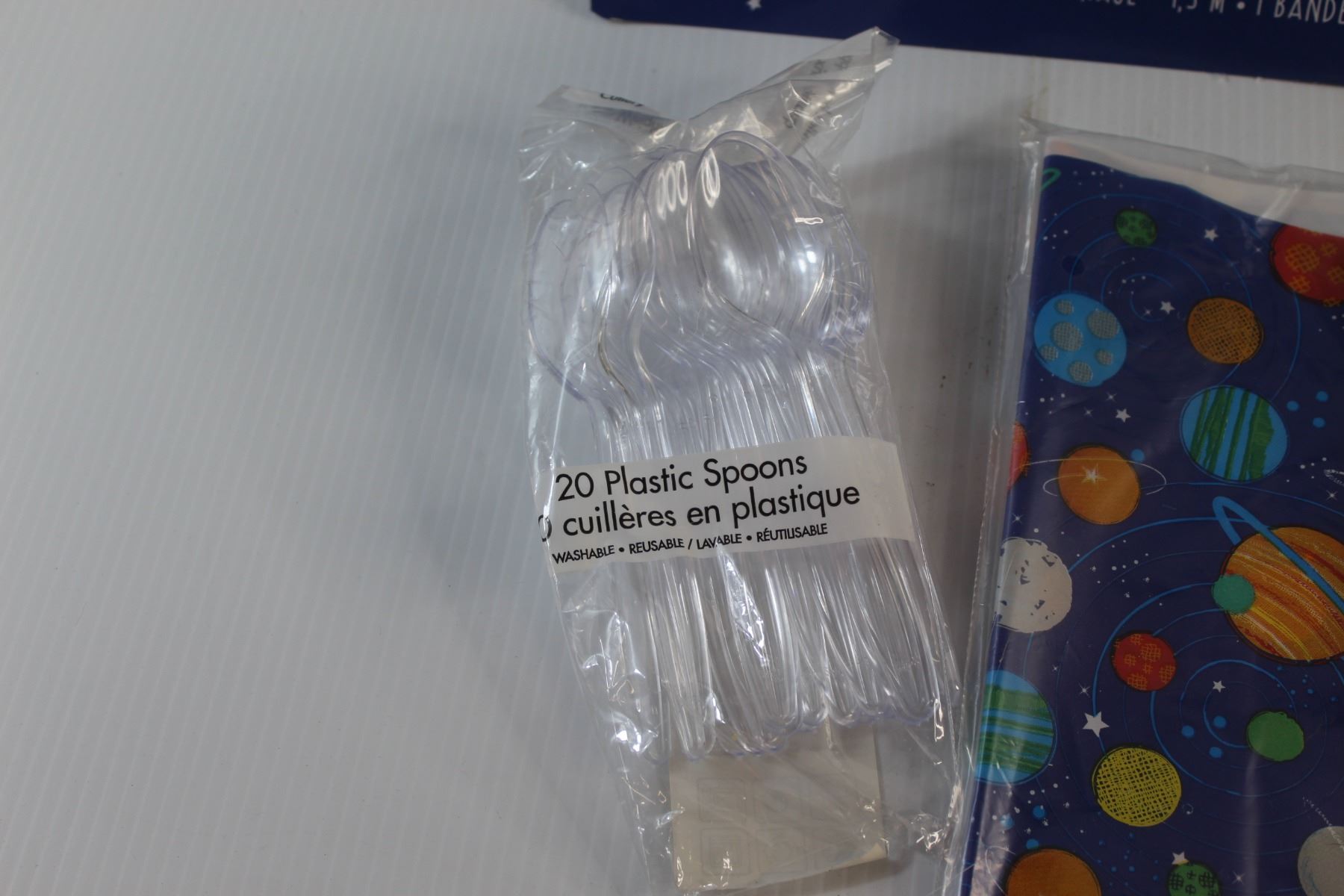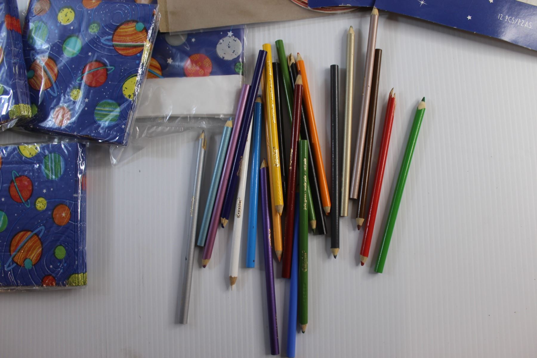 Banner Kit, Table Decoration Kits, Swirl Decorations, Napkins, Plastic Spoons and Colored Pencils