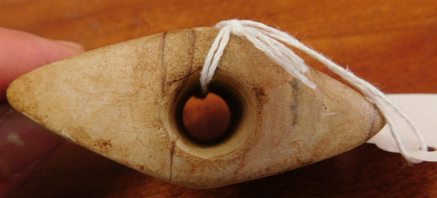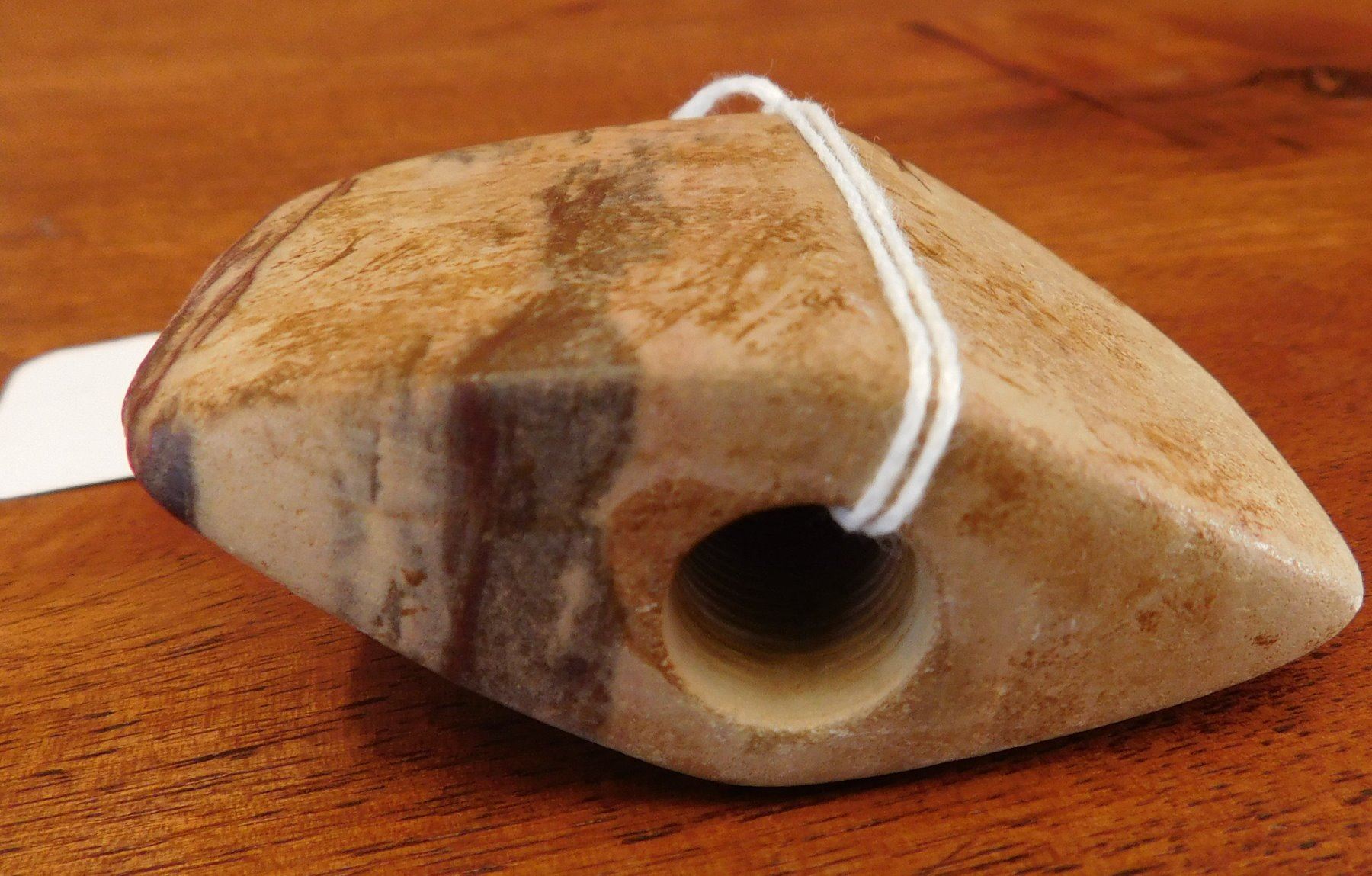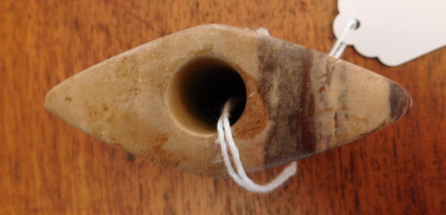 Bannerstone, age unknown. Made of hardstone, the item measures 3" x 2". Arkansas. Condition: Good, see images. Shipping: $13.50 w/insurance and signature.