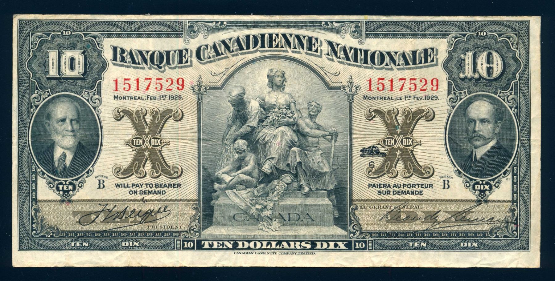 Banque Canadienne Nationale $10.00 1929 Banknote Fine