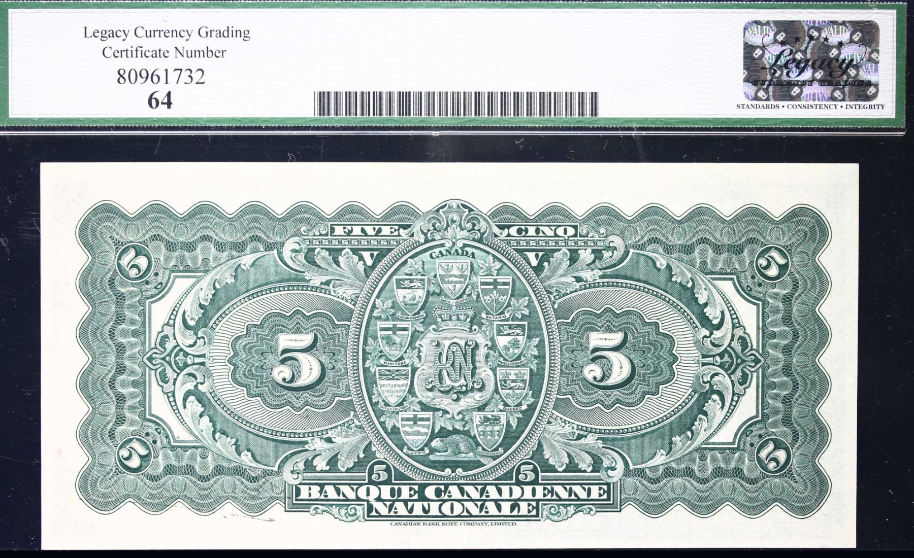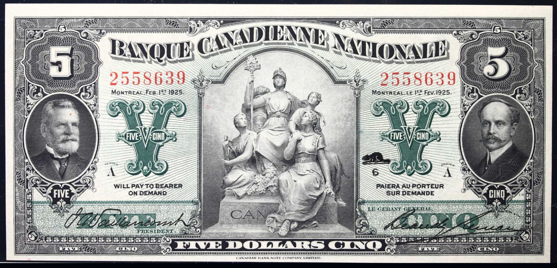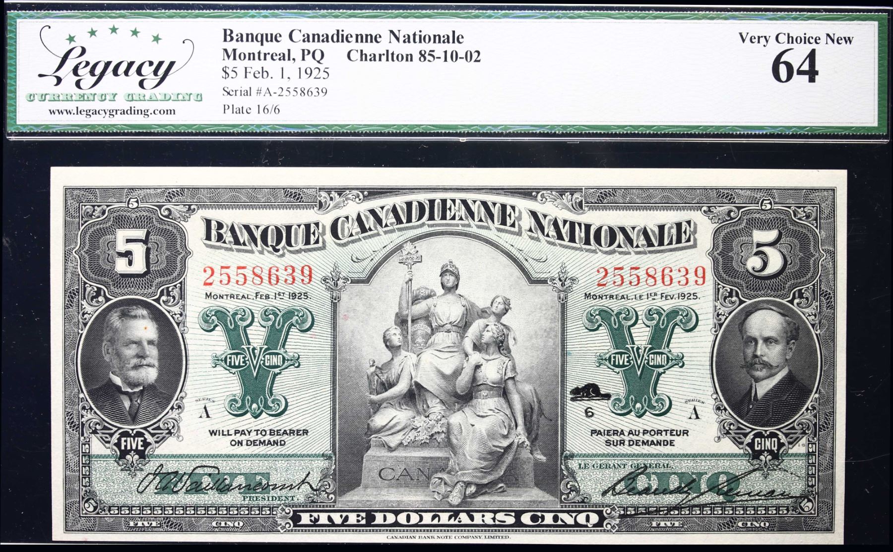 Banque Canadienne Nationale 1925 $5 CH-85-10-02 #2558639 LCG Choice Uncirculated-64