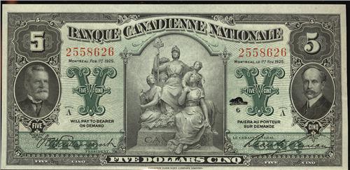 Banque Canadienne Nationale 1925 $5 CH-85-10-02 Original uncirculated! A lovely example.