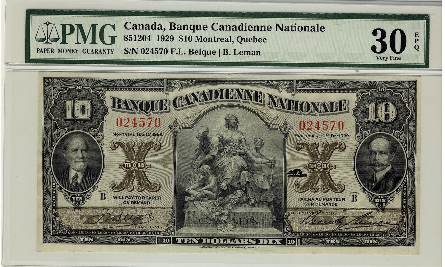 Banque Canadienne Nationale, 1929 $10 #024570, CH-85-12-04 PMG VF30EPQ.