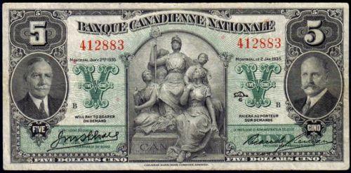 Banque Canadienne Nationale 1935 Five Dollars CH 85-14-02 serial number 412883 B, VF