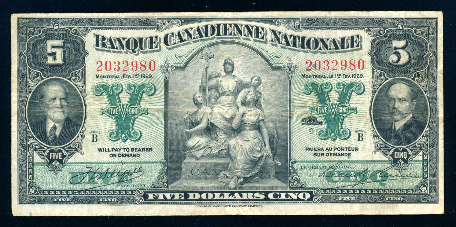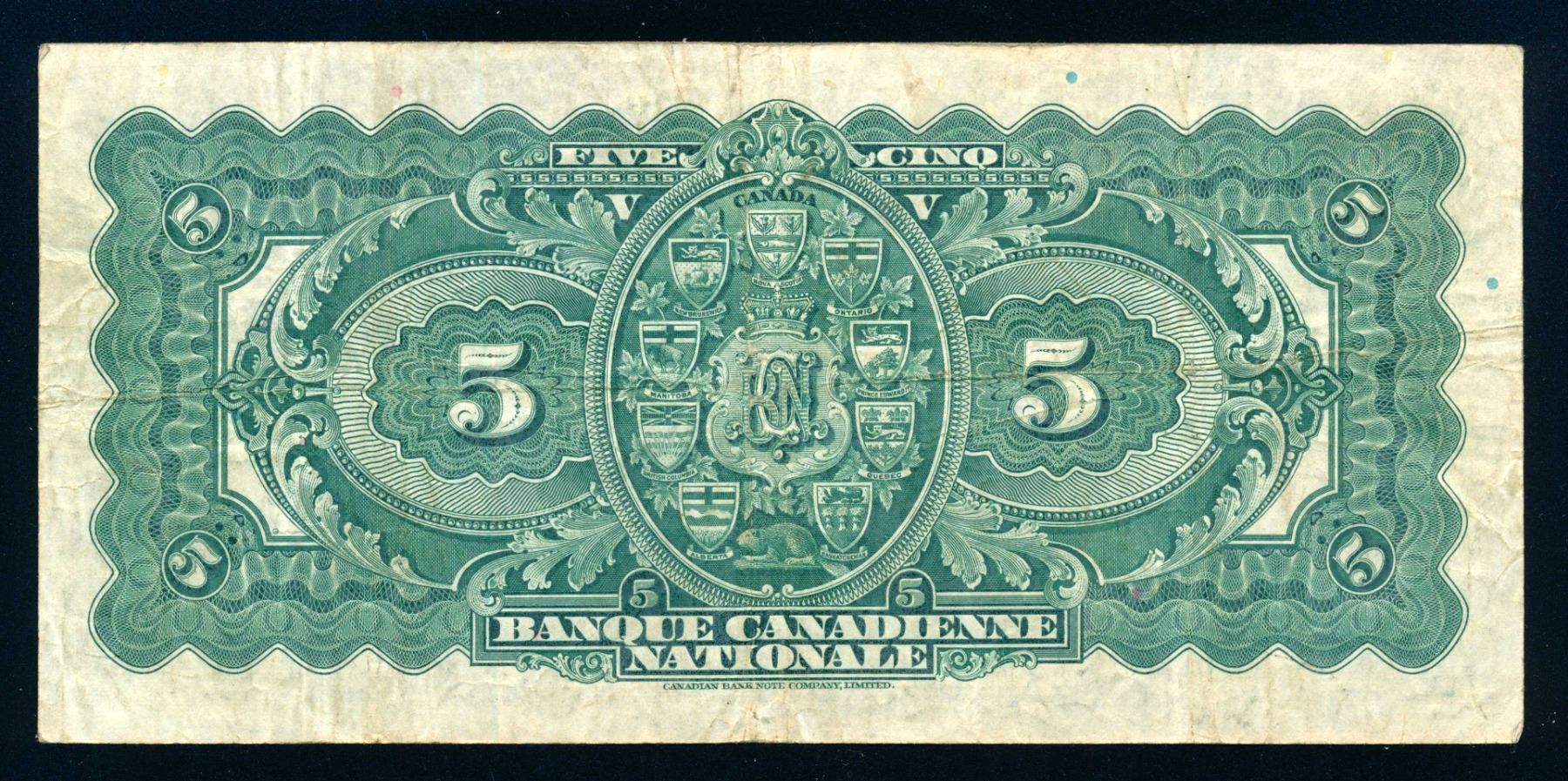 Banque Canadienne Nationale $5.00 1929 Banknote Fine