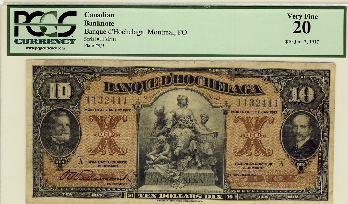 Banque D'hochelaga 1917 $10 1132411 CH-360-24-08 PCGS VF20