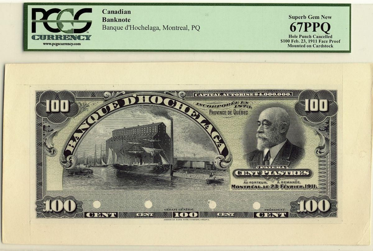 Banque d'Hochelaga, 1911 $100 Face Proof, CH-360-20-10Pa, PCGS UNC67PPQ