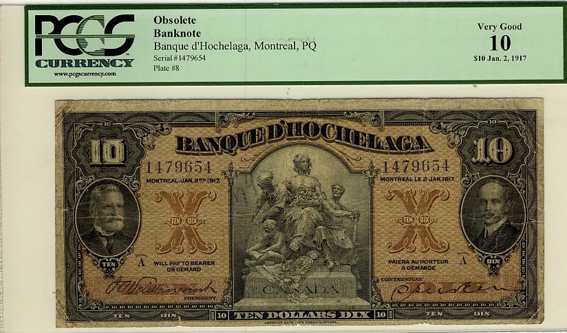 Banque d'Hochelaga, 1917 $10 #1479654, CH-360-24-08, PCGS VG10