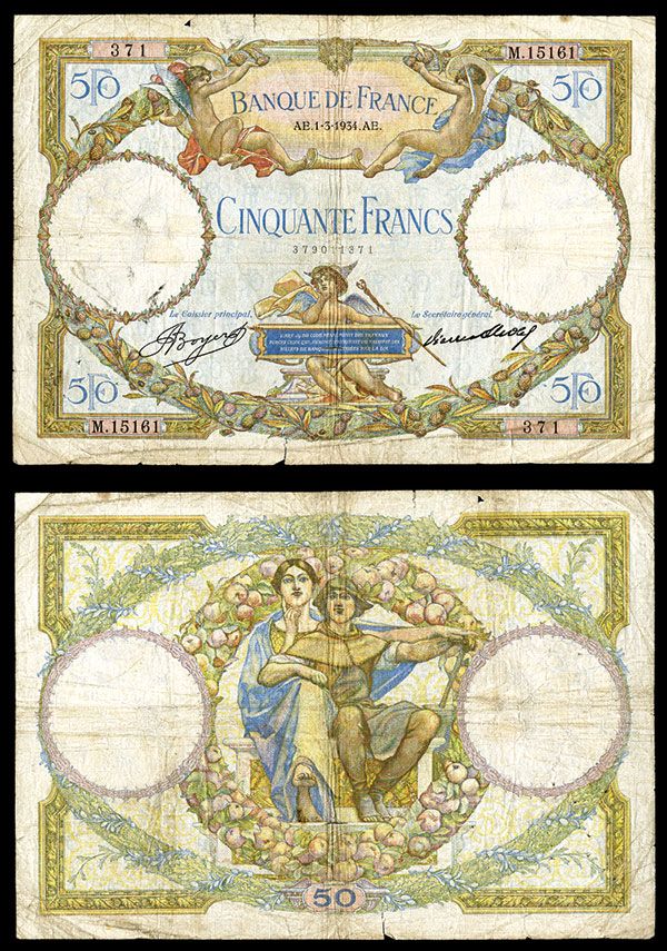 France, 1930 Issue, 500 Francs, P-80b, dated 1-3-1934. Fine condition with small tear on bottom margin.