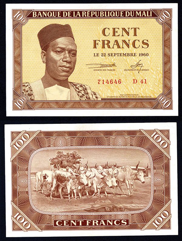 Mali, issued note, 100 Francs, 1960, P-2, PMG 64 Choice UNC EPQ Minor Margin Damage.