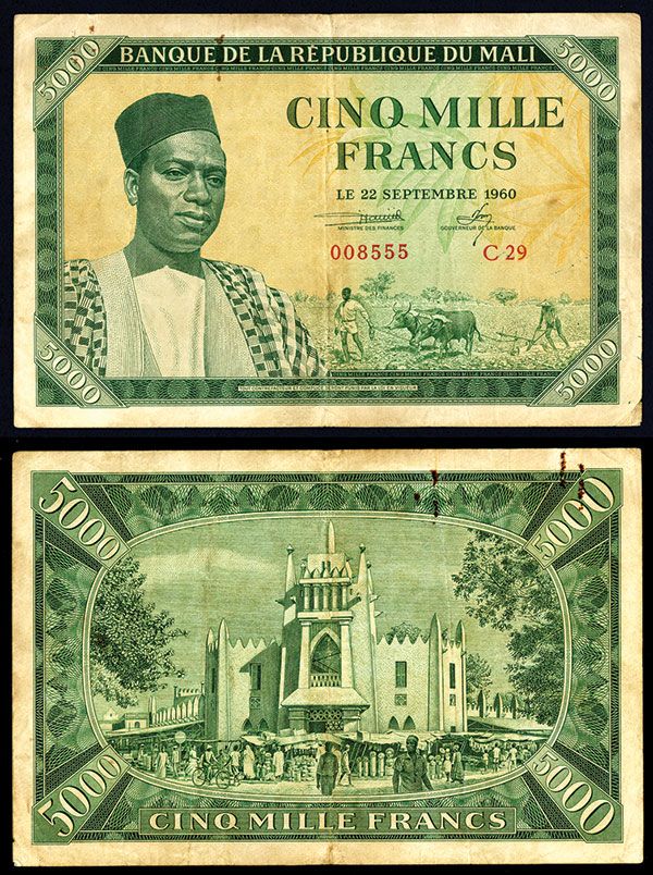 Mali, issued note, 5000 Francs, 1960, P-5, PMG 30 VF NET.