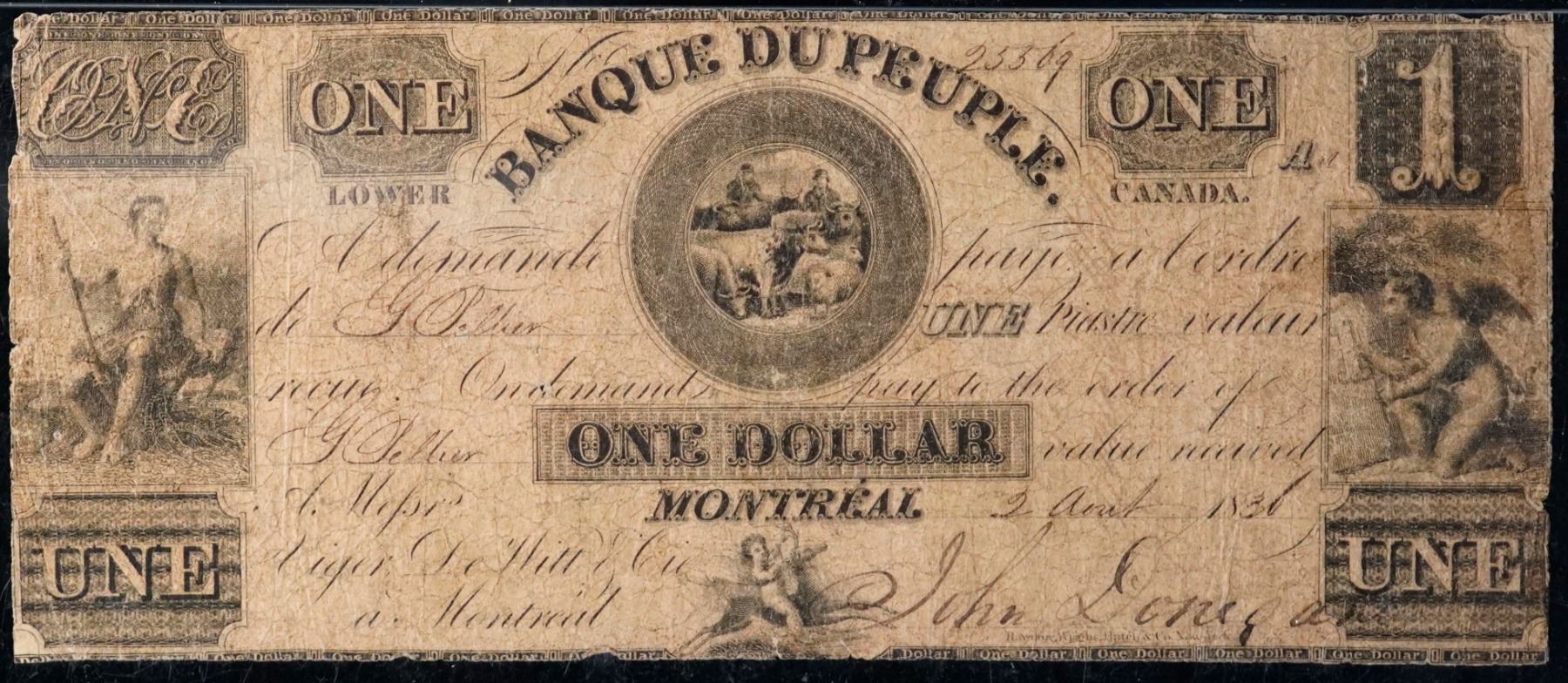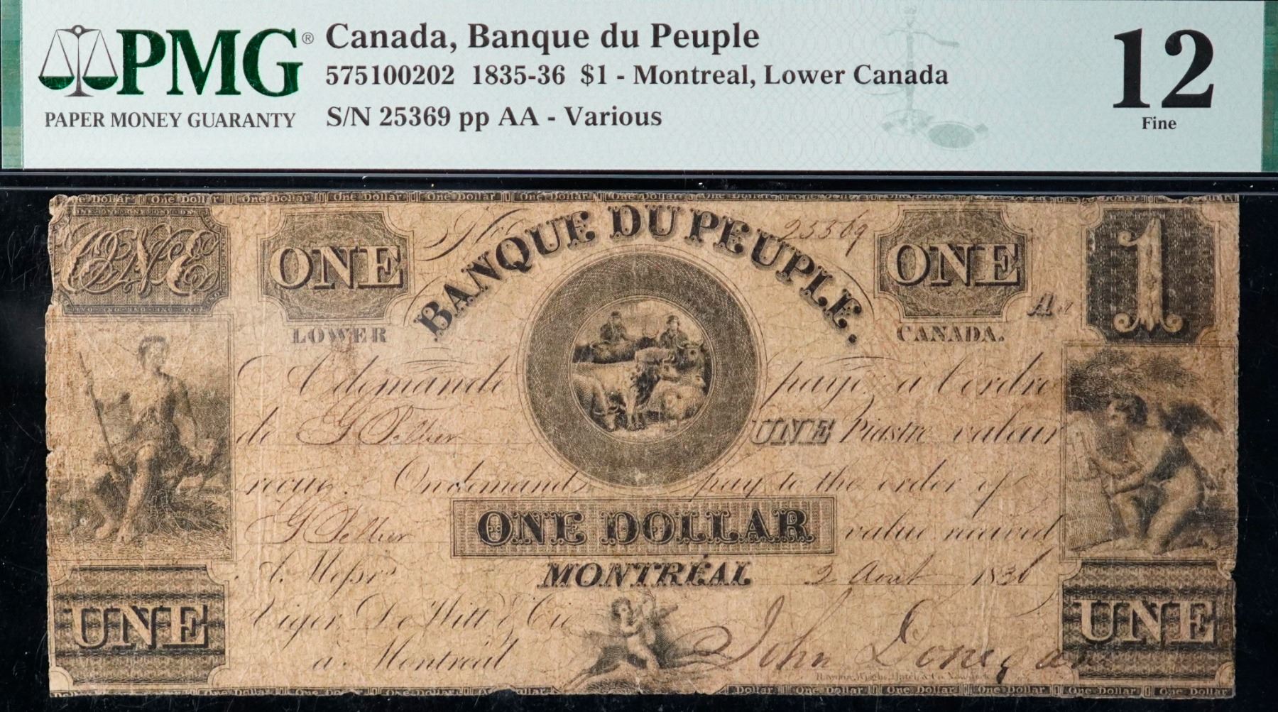 Banque du Peuple 1835-36 $1 #25369 CH-575-10-02-02 PMG Fine-12 Rarely seen and offered. A superb example.
