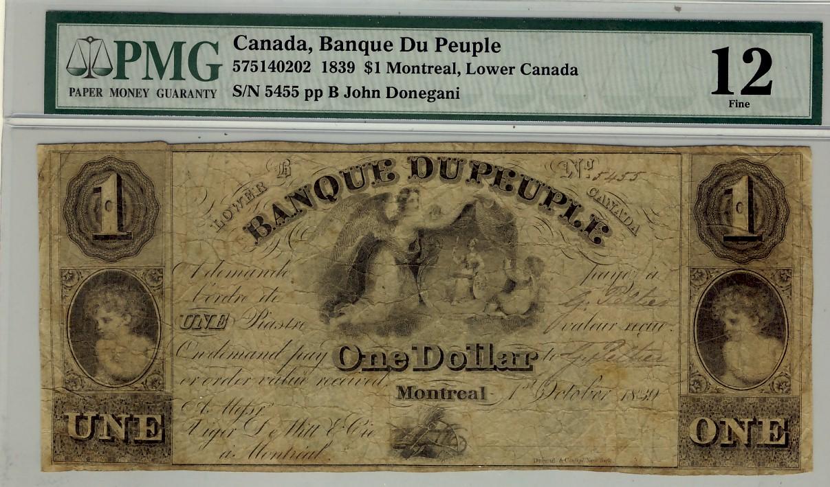 Banque du Peuple, 1839 $1 #5455, CH-575-14-02-02, PMG F12.