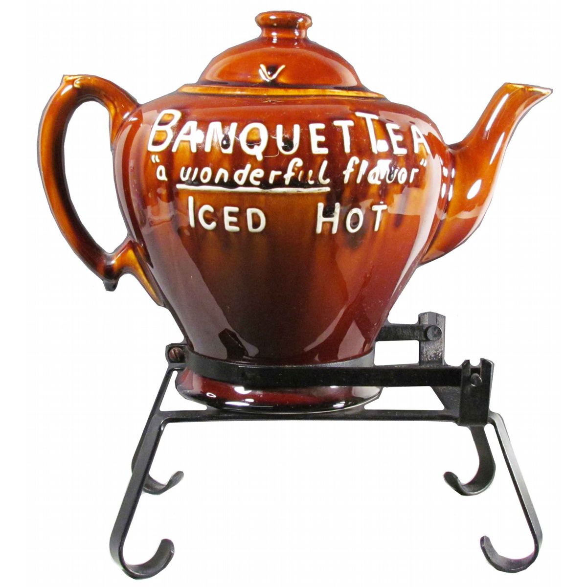 Banquet Tea Ceramic Tea Pot with dispensing tip stand. No chips or cracks, excellent condition. 14 X 14 1/2 X 7 inches.