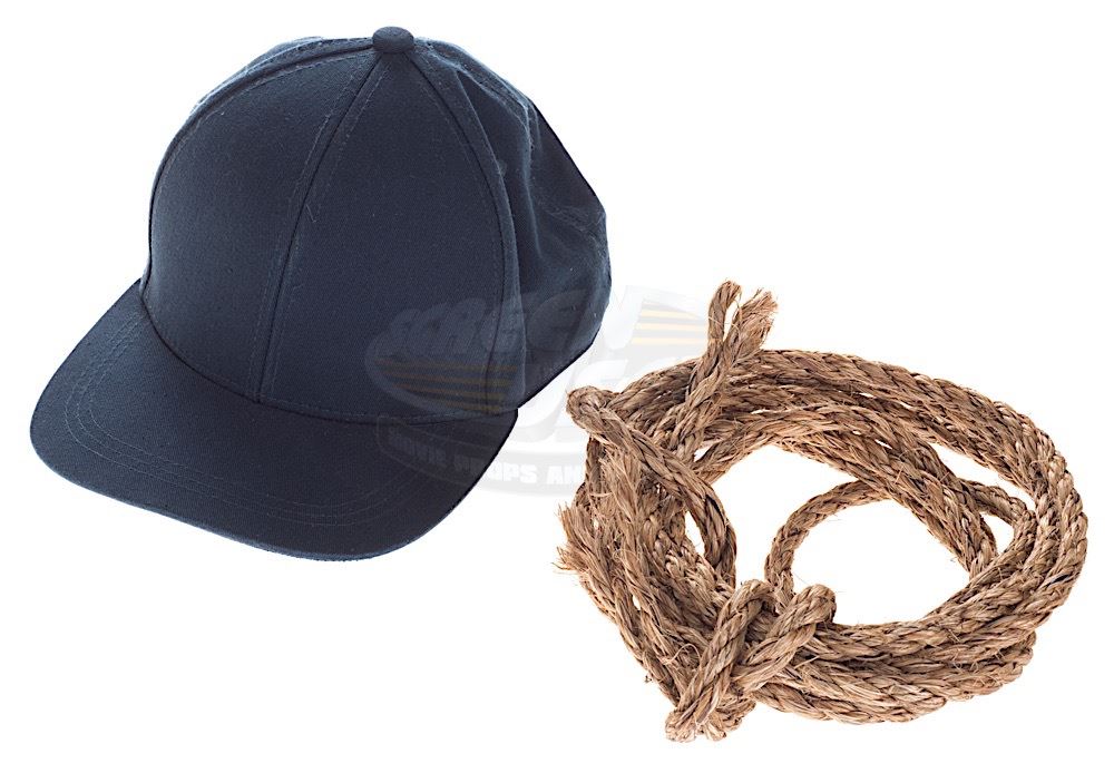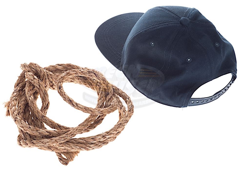 This hat and rope were acquired by the production for use by Frederick Weller as "Declan Bode" during filming of the season four episode titled "Innocent Might Be A Bit Of A Stretch". The black baseball style hat has a snap in the back. The rope measures 155" and is .5" thick.