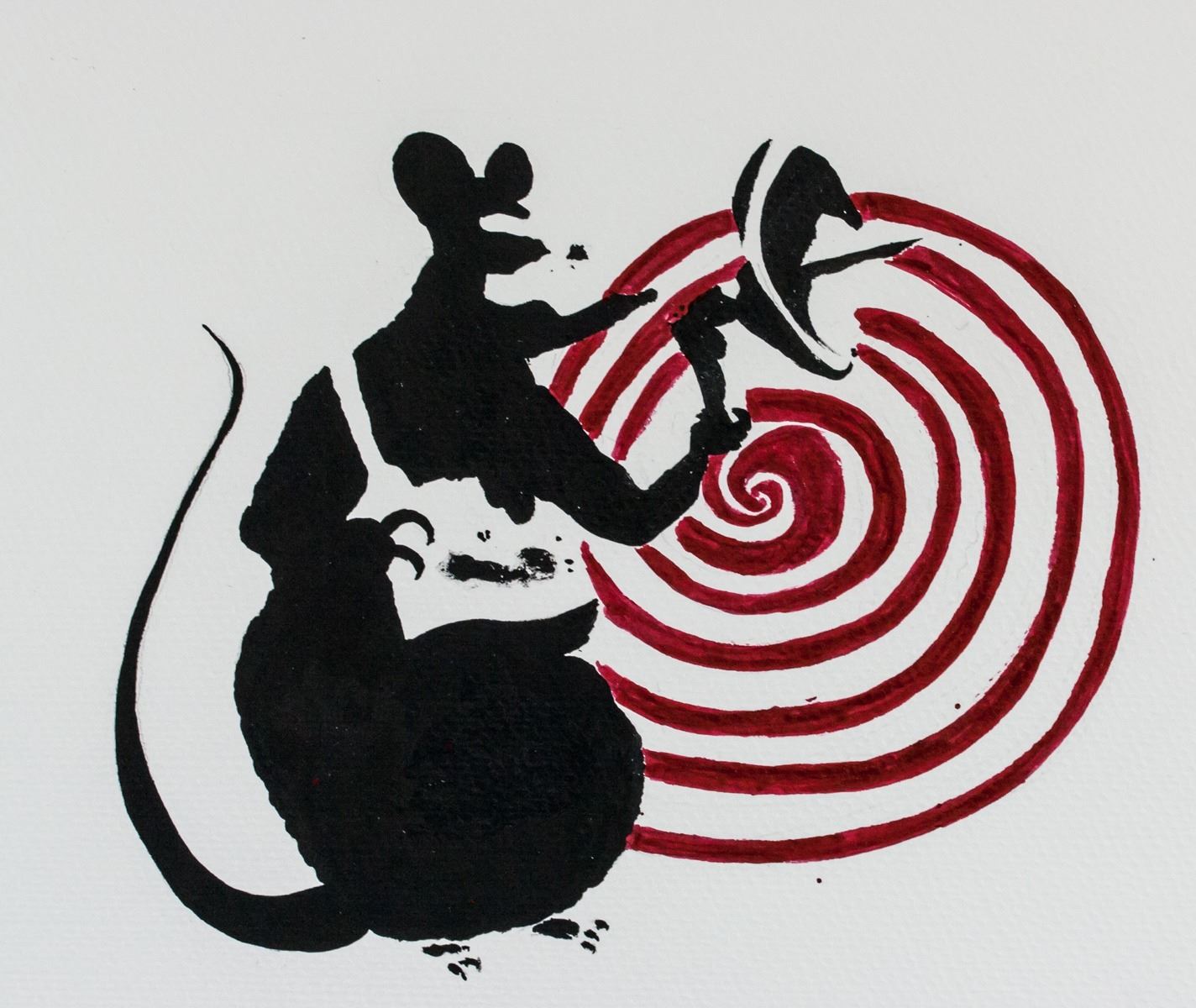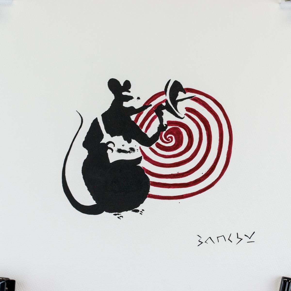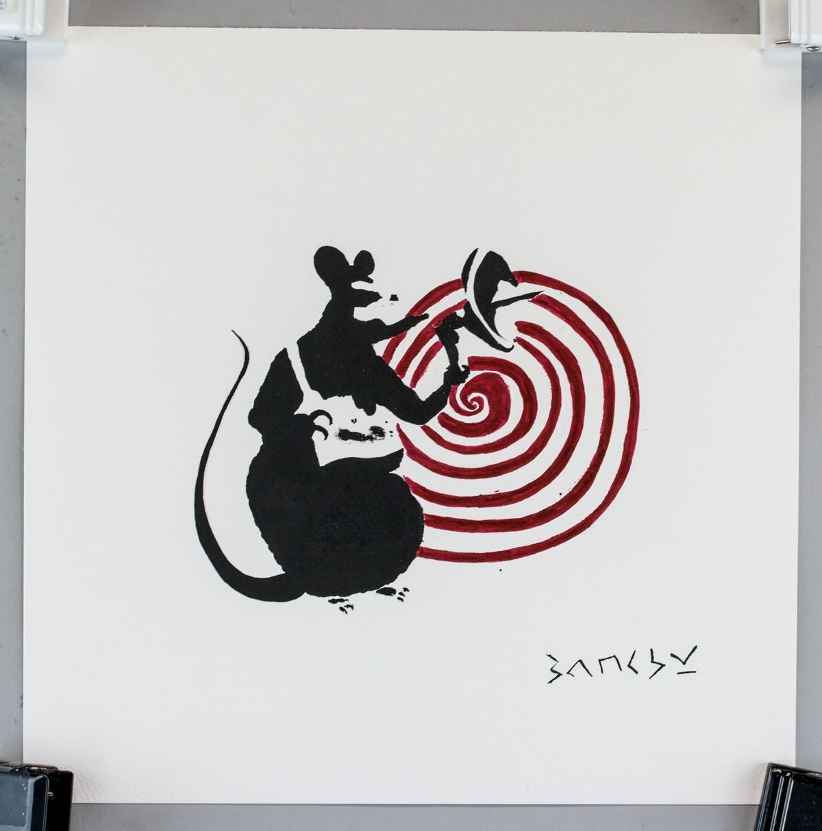Ink on paper. Featuring a rat with a megaphone. Signed BANKSY on the lower right corner. Attributed to Banksy (born 1974, British). 30 x 30 cm (11.8 x 11.8 inches). PROVENANCE: Upper New York estate