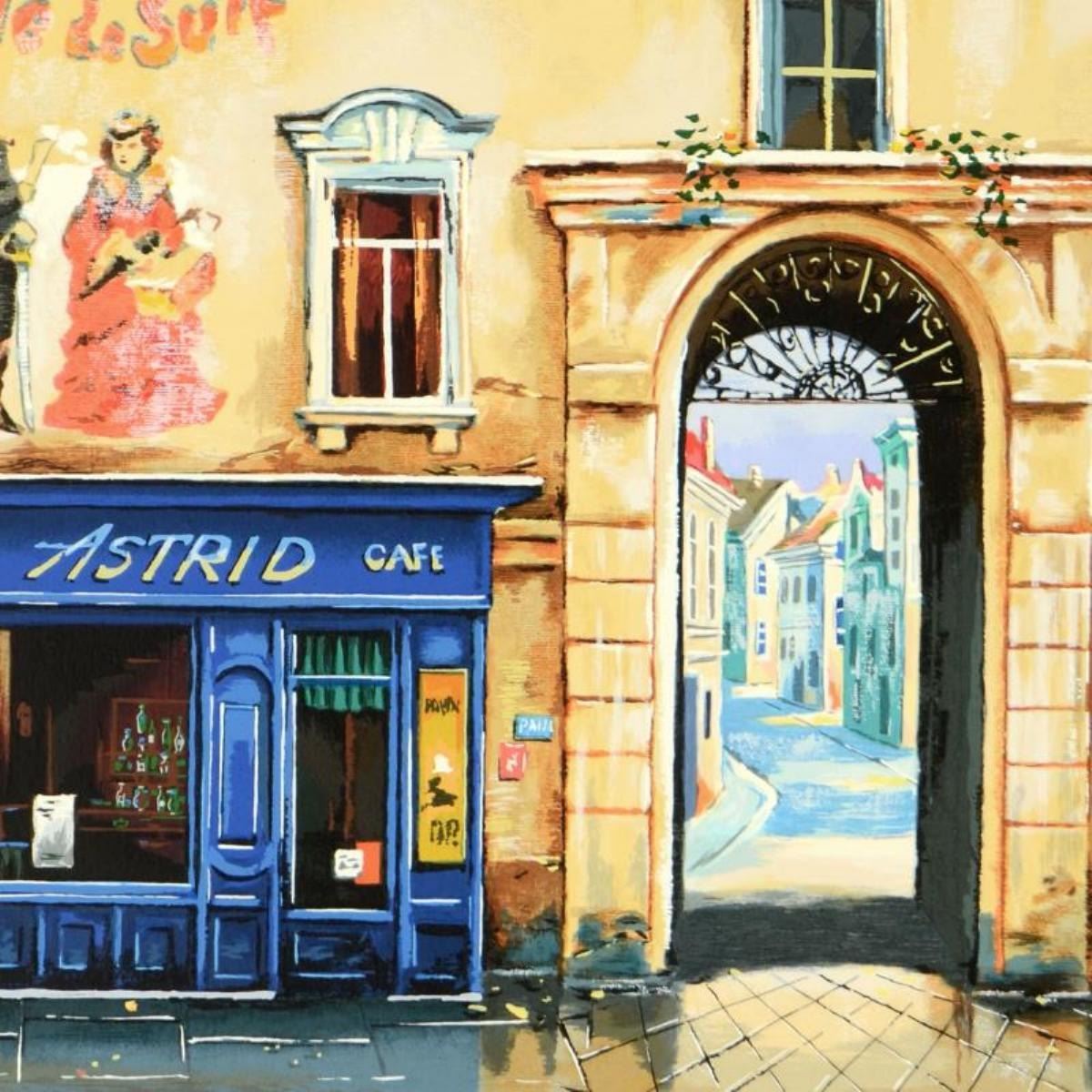 Bar Astrid by Borewko, Alexander. "Bar Astrid" is a limited edition serigraph on paper by Alexander Borewko, numbered and hand signed by the artist. Includes Letter of Authenticity. Measures approx. 35" x 15" (border), 31" x 15" (image). Please note: there is very minor wear on the frame.