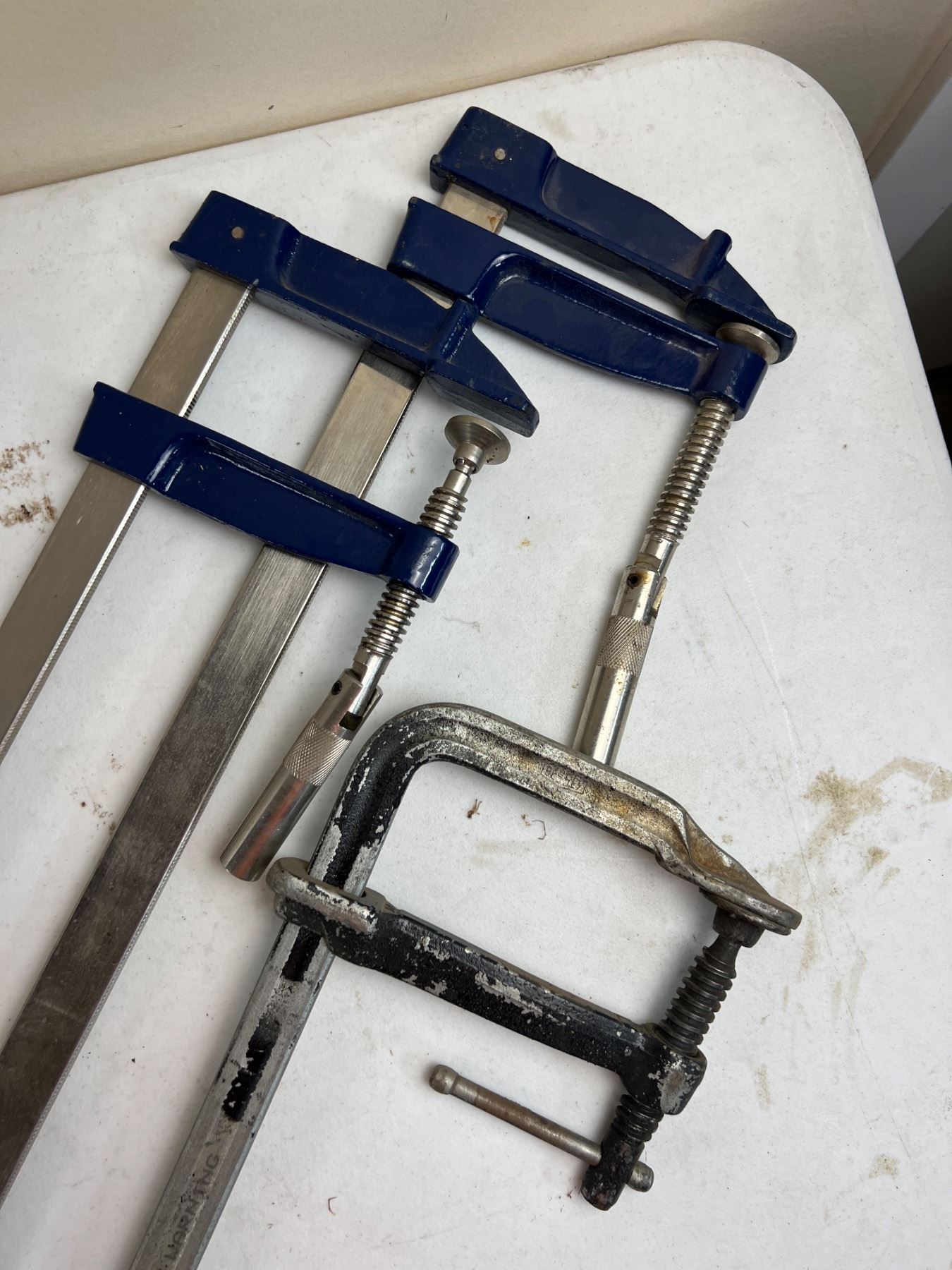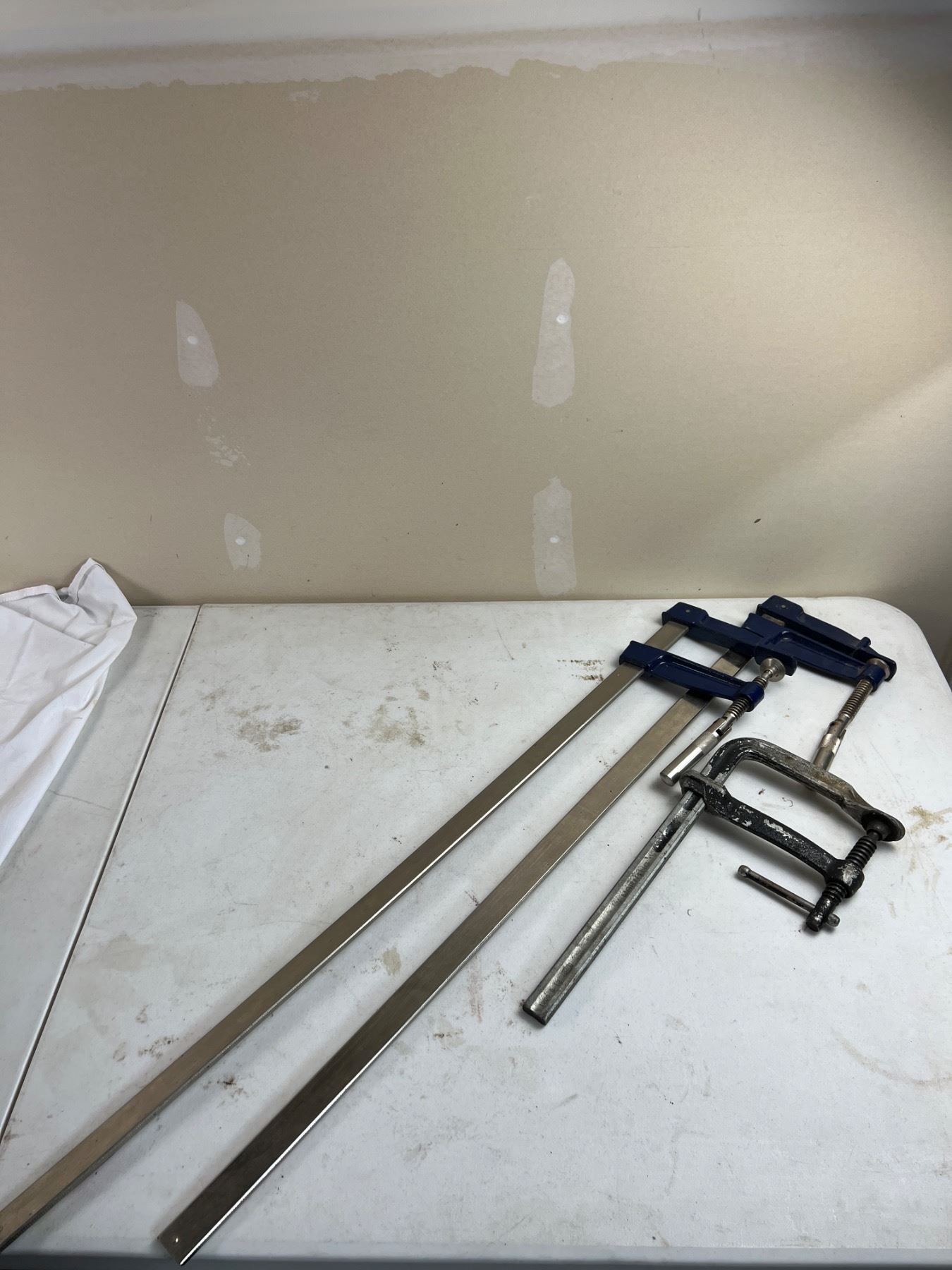 The two blue clamps are 36"L, the smaller clamp is slightly warped