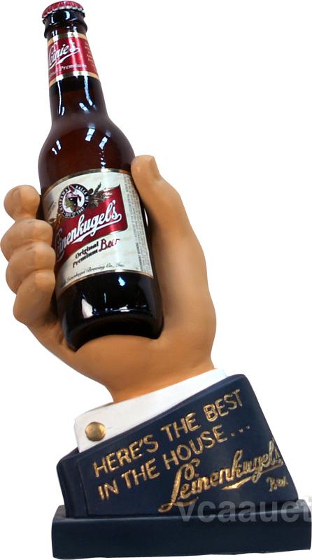 Bar Countertop "Leinenkugel's" Beer Hand Holding Bottle Figural Statue Display w/ bottle N.O.S. in great condition - 15" tall