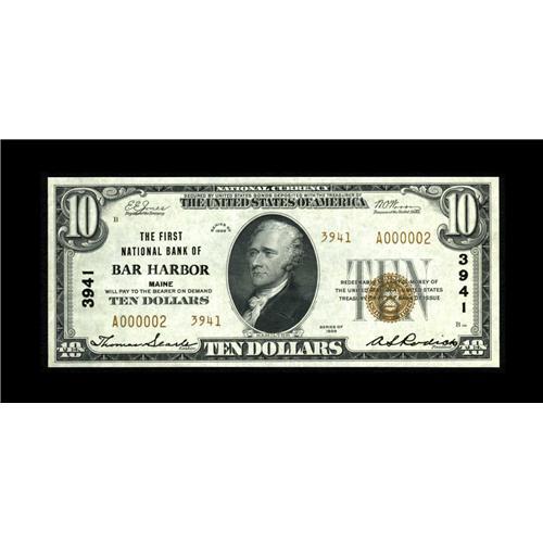 <B>Bar Harbor, ME</B></I> - $10 1929 Ty. 2 <B>The First NB</B></I> Ch. # 3941<BR>A fresh and most attractive example from one of America's most beautiful places. <B>Choice About Uncirculated.</B></I><BR><BR><b>Shipping:</b> Coin/Currency (<a target="_blank" href="http://www.heritageauctions.com/common/shipping.php">view shipping information</a>)