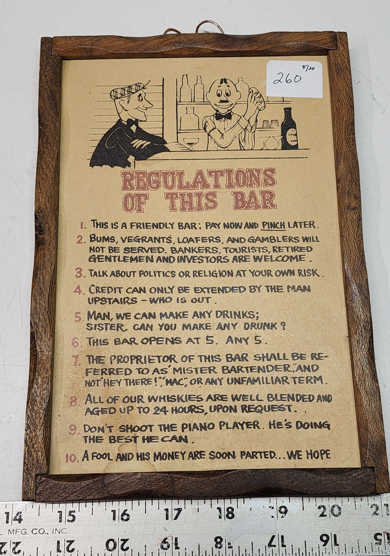 "Bar regulations" sign - 8x10