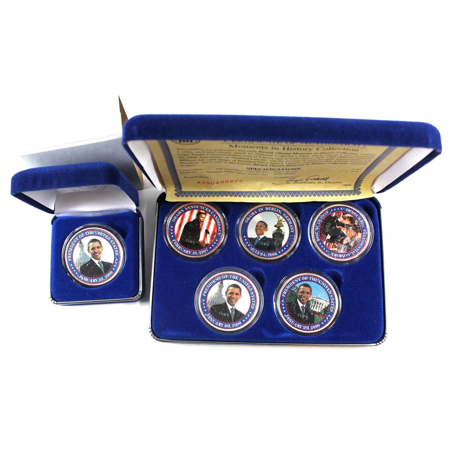 Barack Obama Moments in History Commemorative Coloured Silver Plated issues. 6pcs