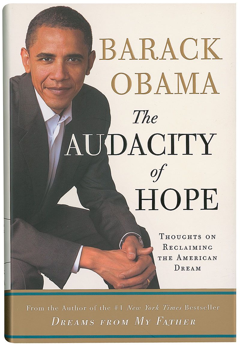 Signed book: The Audacity of Hope. First edition, first printing. NY: Crown Publishers, 2006. Hardcover with dust jacket, 6.5 x 9.5, 375 pages. Signed in person, as president, on the title page in gold ink. Autographic condition: fine. Consignor notes that signature was acquired in New Hampshire in 2009. Book condition: NF/NF. Black paper-covered boards; minor crease at spinetail. Dust jacket also has a minor crease at spinetail and extremely slight rubbing.