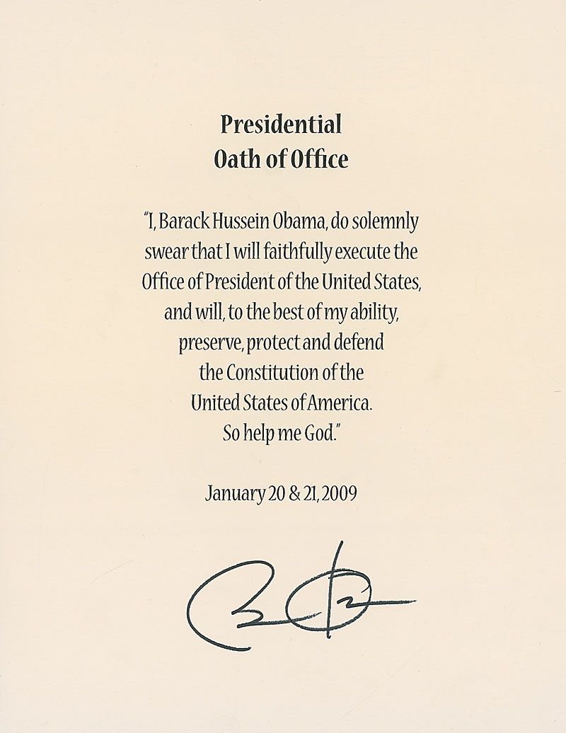 Souvenir Oath of Office on an off-white 8.5 x 11 sheet, signed at the bottom in black felt tip. In very fine condition.