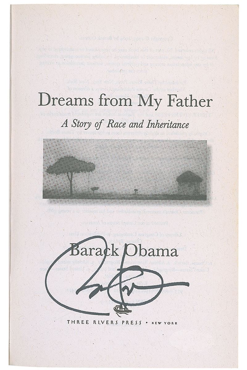 Signed book: Dreams from My Father. Revised edition. NY: Three Rivers Press, 2004. Paperback, 5.25 x 8, 457 pages. Signed on the title page in black felt tip. In fine condition, with some mild handling wear. Accompanied by a letter of authenticity from James Spence.