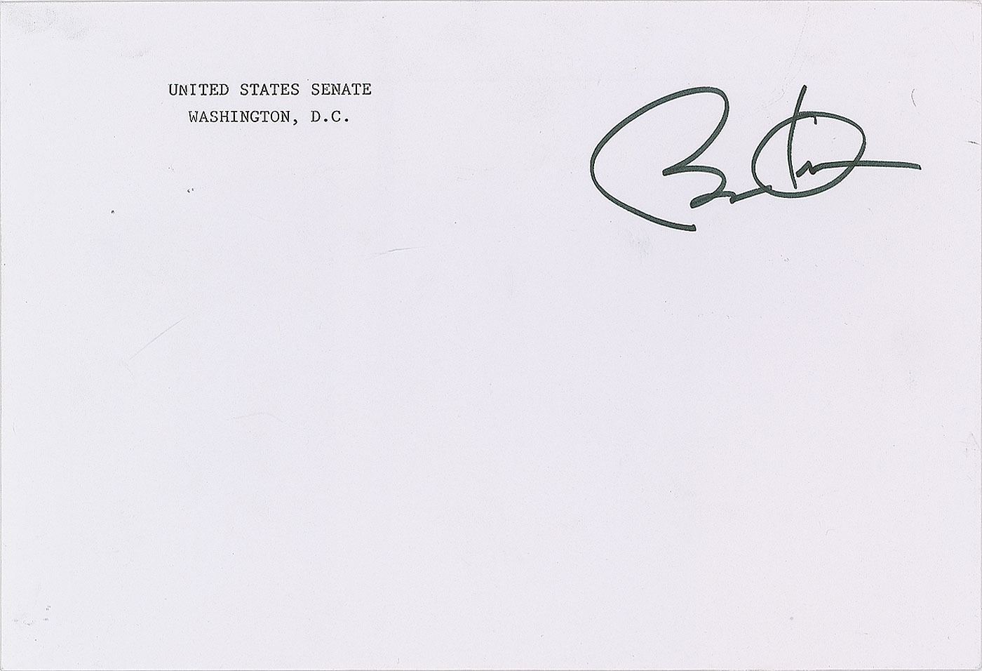 Felt tip signature, "Barack Obama,” on a white 9.5 x 6.5 envelope to which the address of the Senate was added, evidently as a sort of 'free frank' mock-up. In fine condition.