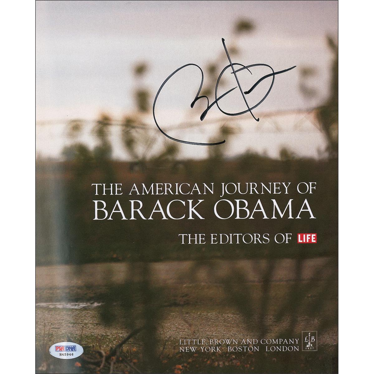 Signed book: The American Journey of Barack Obama. First edition, first printing. NY: Little, Brown and Company, 2008. Hardcover, 9.25 x 11.25, 175 pages. Signed on the title page in black felt tip. In fine condition, with a PSA/DNA authentication label affixed to signed page and some mild cover rubbing. Accompanied by a full letter of authenticity from PSA/DNA.