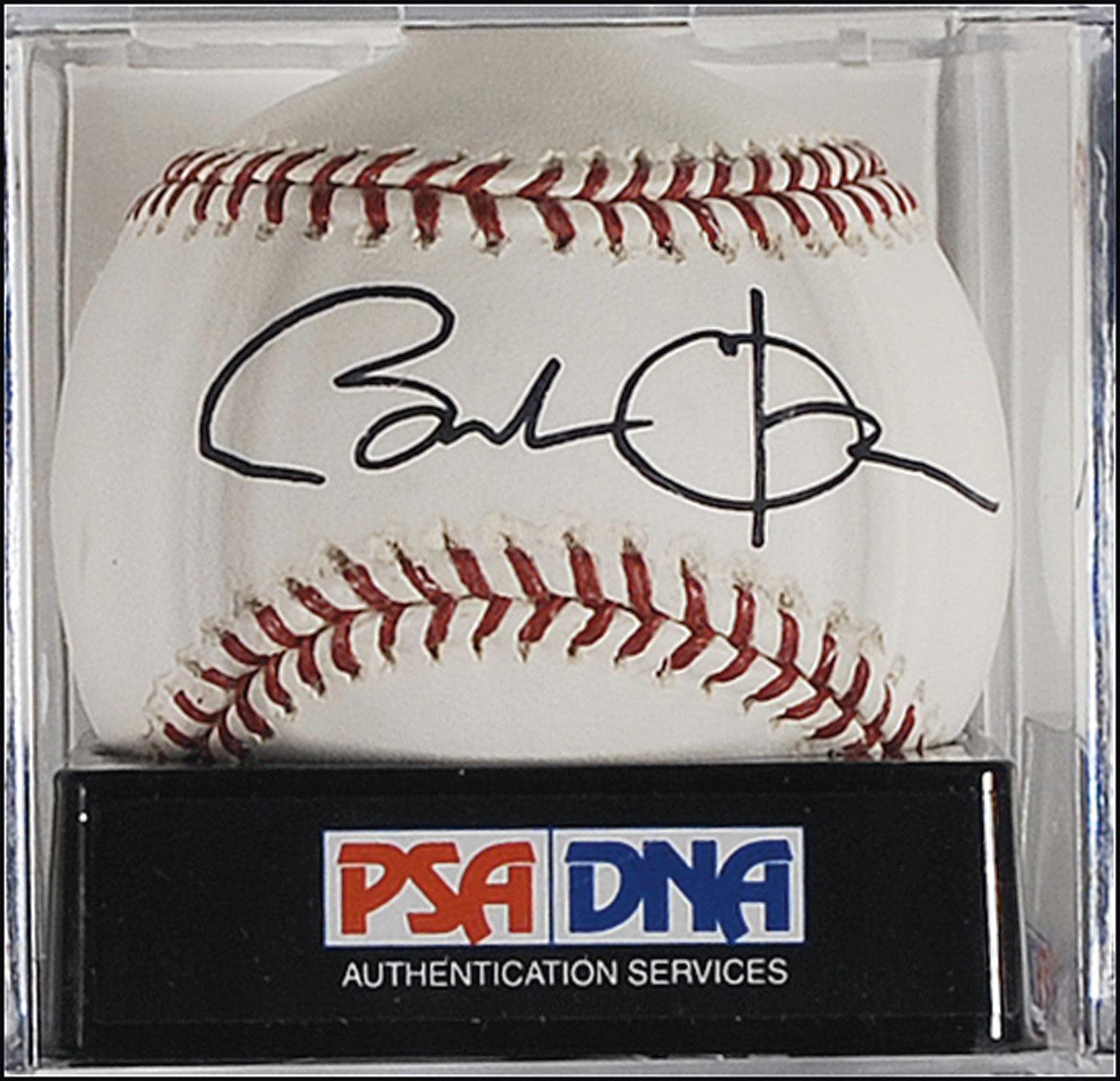 Official Rawlings Major League baseball signed in black felt tip on the sweet spot. Encapsulated in a plastic PSA/DNA authentication holder grading the ball “GEM MT 10.” In very fine condition. Accompanied by a full letter of authenticity and grading from PSA/DNA, grading the ball a “10,” the autograph a “10,” and an overall grade of “10.” Superb condition and perfect for display.