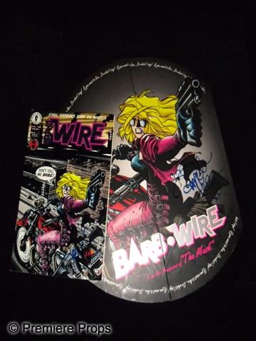 Barb Wire (1996) - An oversized promotional kit and comic book autographed by Pamela Anderson. Folds out to large size with animation and production information. Comic book is Issue #1 from Dark Horse. Includes paperwork from West Hollywood Elementary School auction.