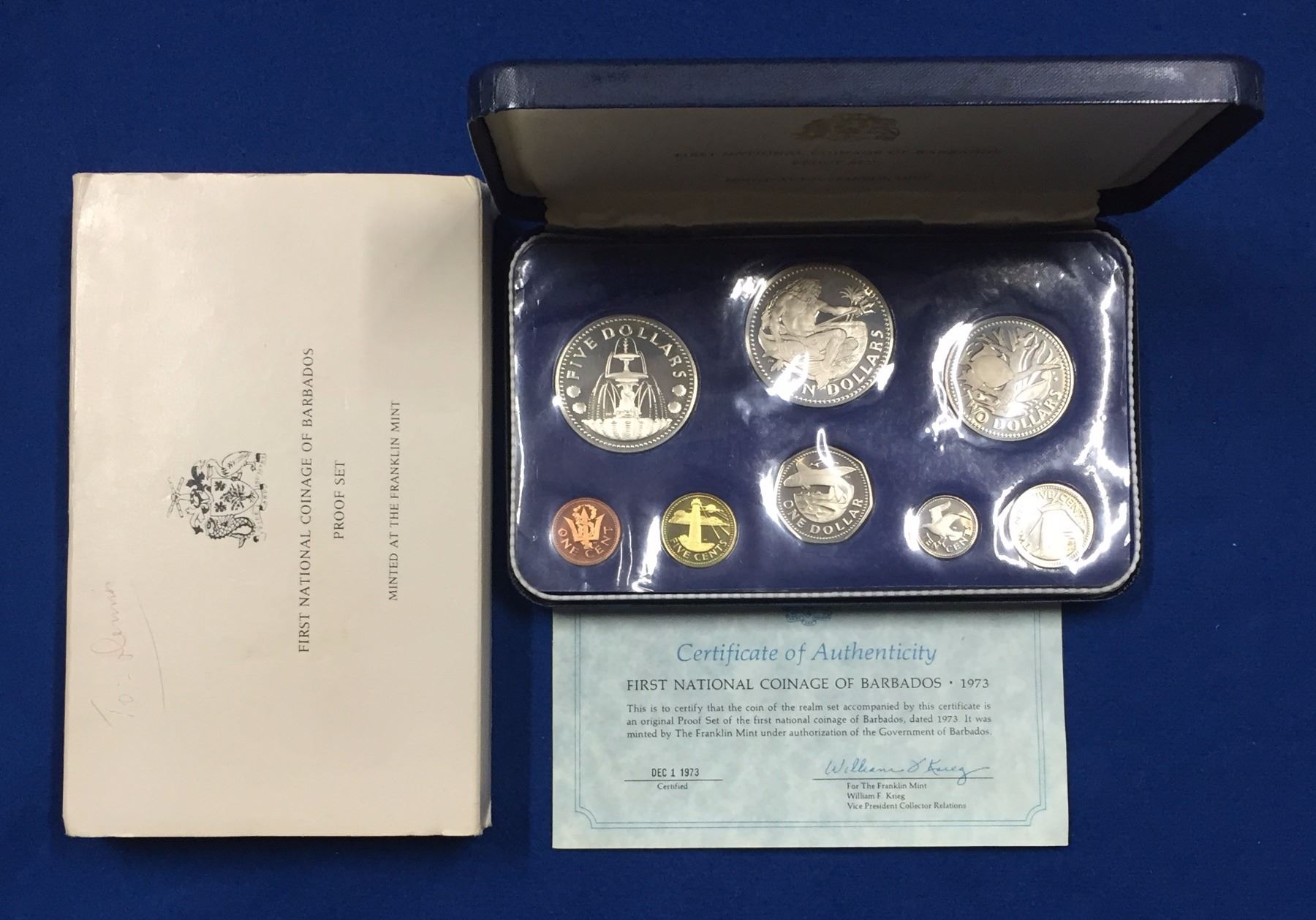 Barbados 1973 Proof Coin Set. Includes 8 coins. 2 coins are silver.