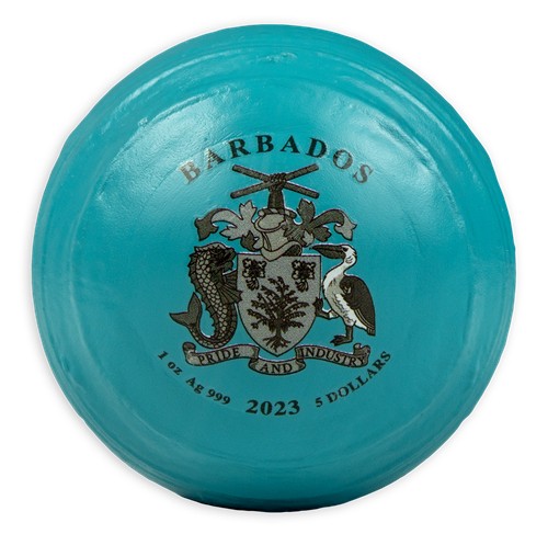 Coin is 1oz and .999 fine with a blue lacquer finish. (Tax Exempt)