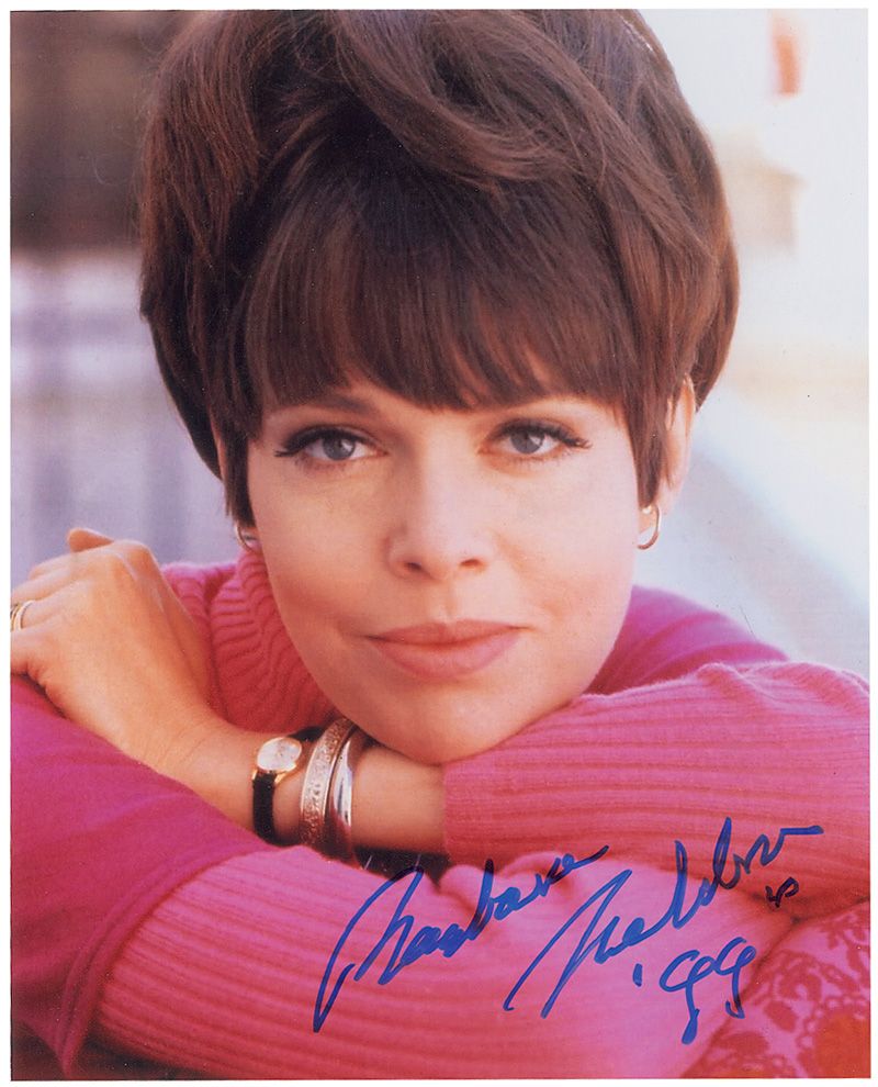 Two satin-finish 8 x 10 photos, one color portrait and one from Get Smart, each signed in blue felt tip, with Feldon adding “99” below her signature. In fine condition.