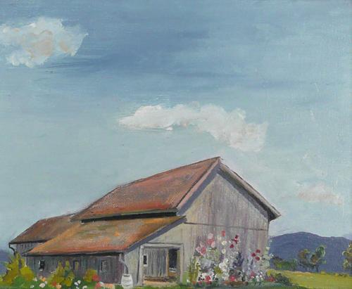 Barbara Hale (20th Cent.) Oil on Canvas "Hollyhocks" Signed lower left 8" x 10"