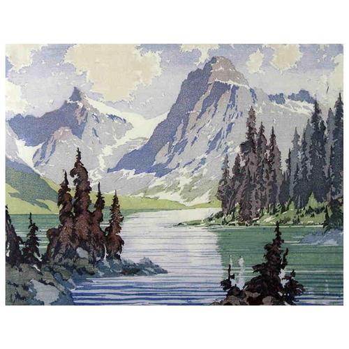 [Canadian ASA, CPE 1911-1986] EMERALD LAKE Colour woodcut on paper; Ed. #37/100 11.5 x 15 in. Signed, titled & editioned.